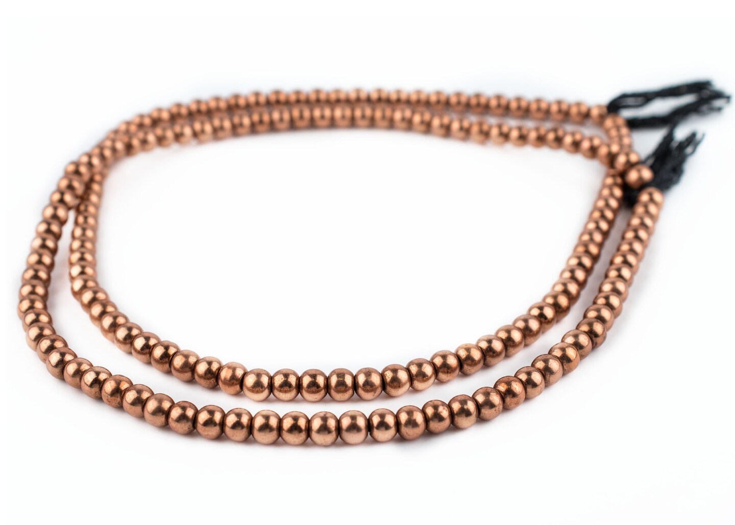 The Bead Chest Copper Round Sphere Beads 6mm, Full Strand of Quality Metal Spacers for DIY Jewelry Design