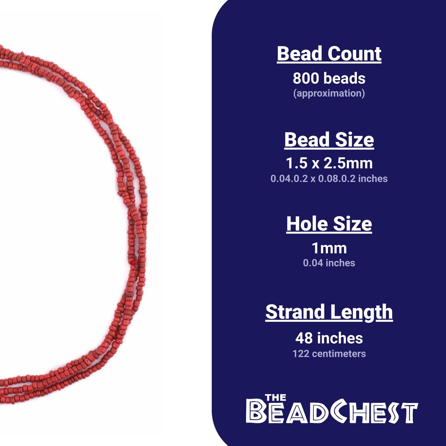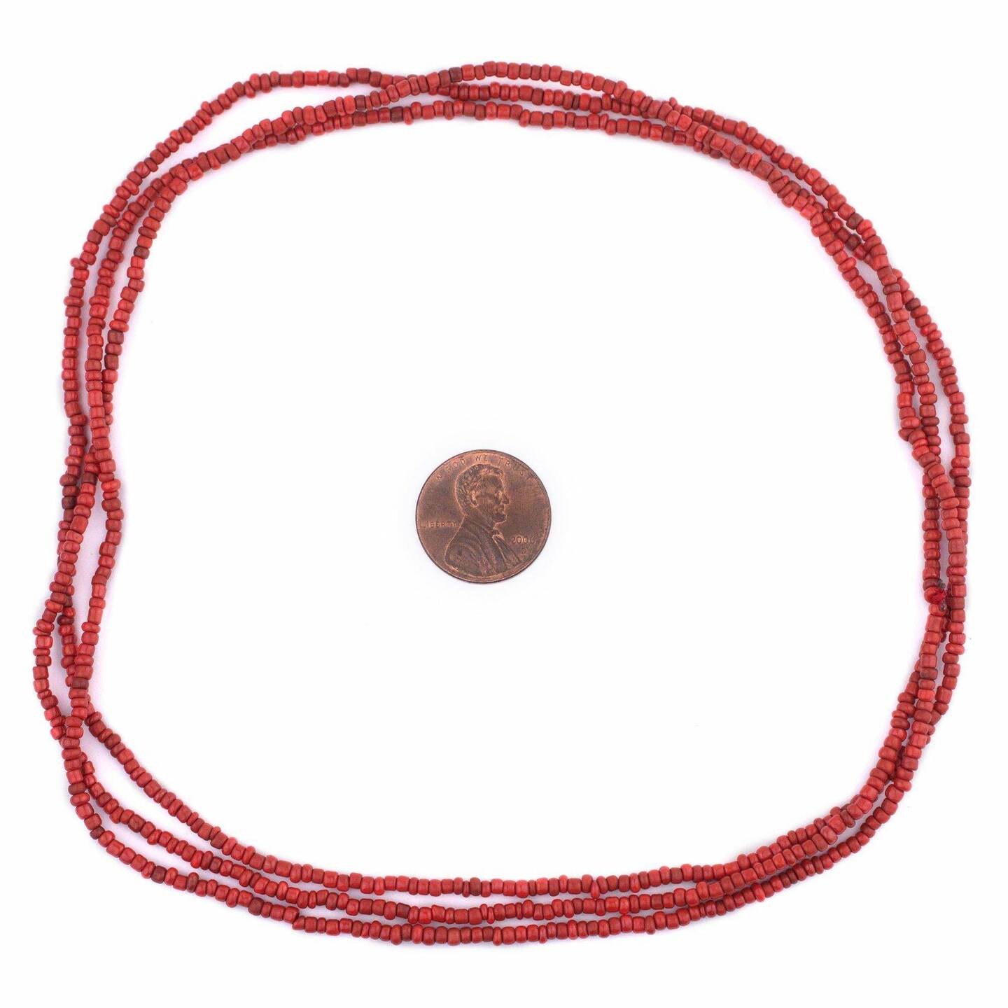 The Bead Chest Coral Red Java Glass Seed Beads (2.5mm, 48" Strand)