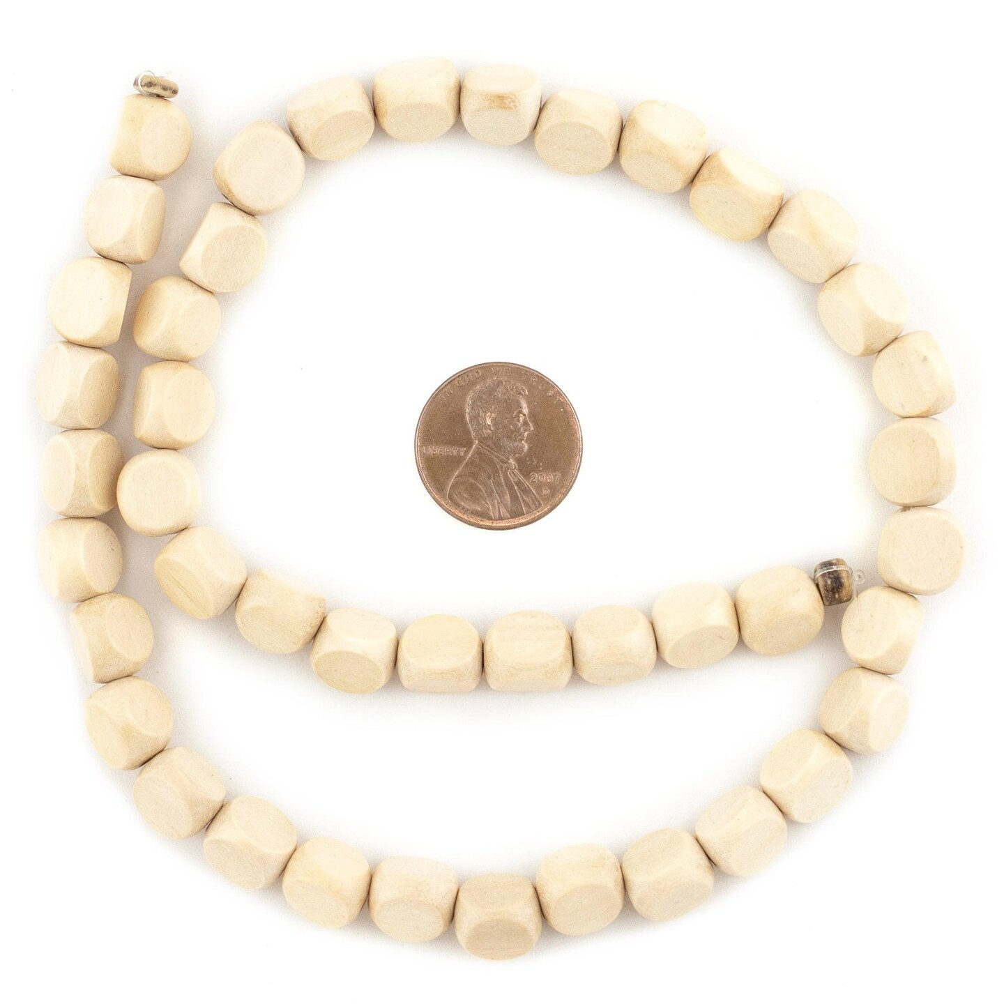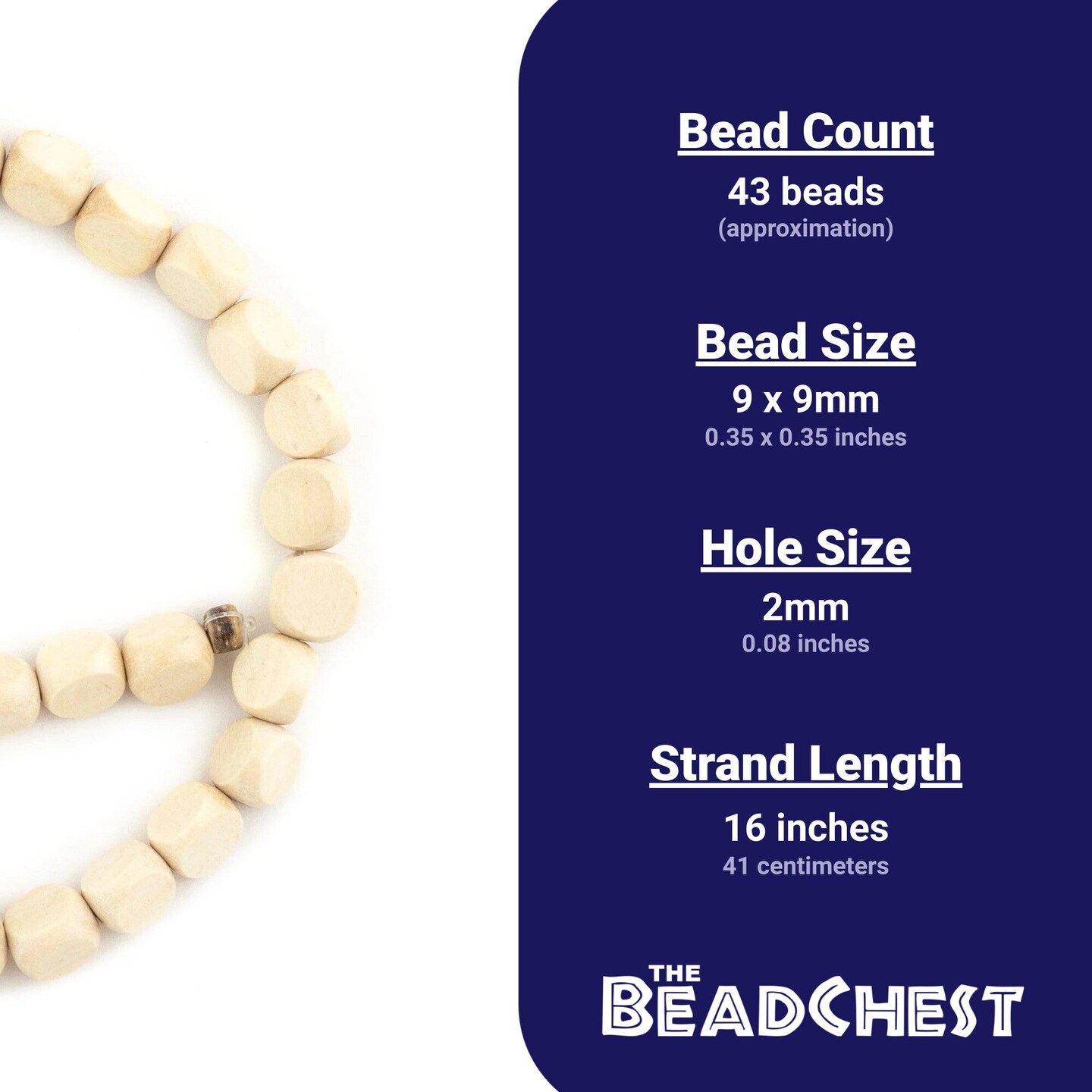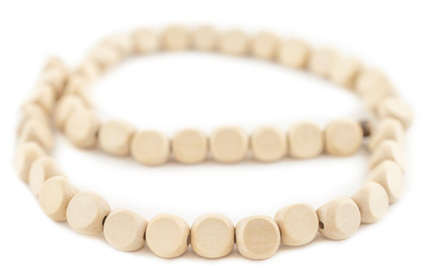 The Bead Chest Cream Triangular Faceted Natural Wood Beads 9mm White Large Hole 16 Inch Strand