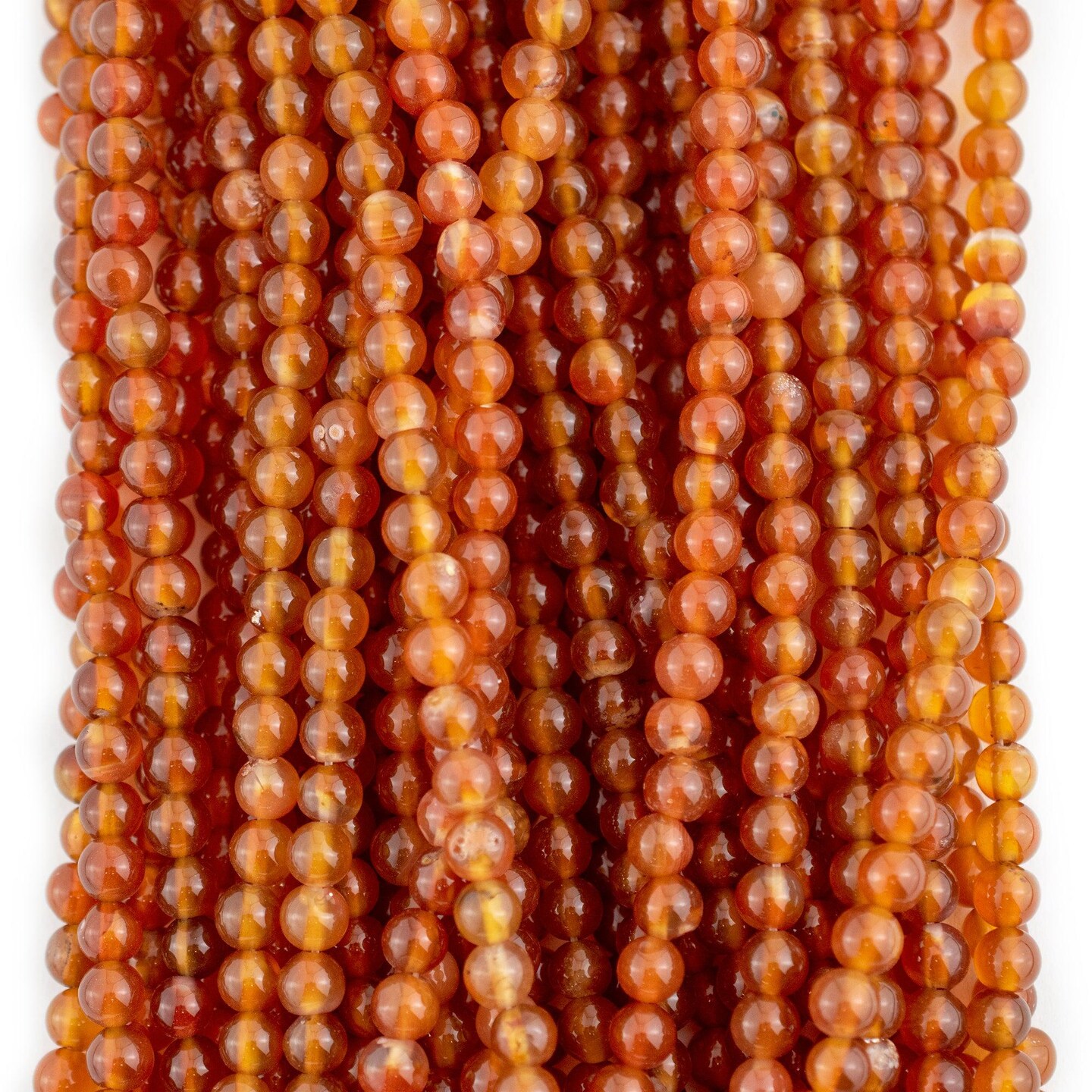 The Bead Chest Dark Round Carnelian Beads 6mm Orange Gemstone 14.5 Inch Strand