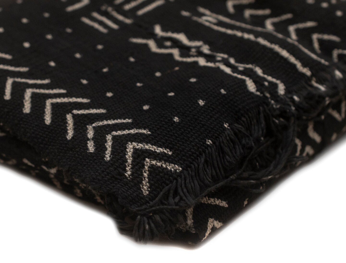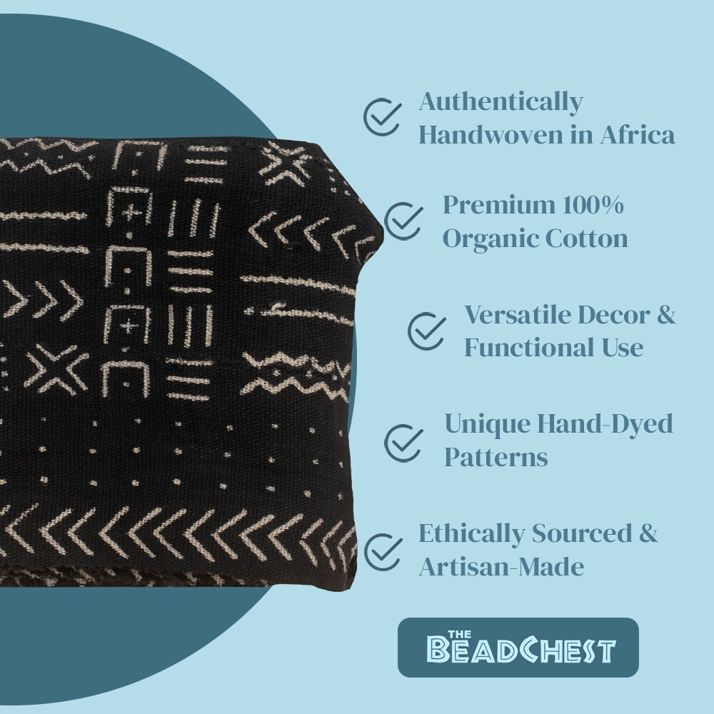 The Bead Chest Ebony Black Bogolan Mali Mud Cloth - Handmade African Textile from West Africa - 40x64 Inches - Ideal for Home Decor, Boho Throw Blanket, Upholstery, or Crafts
