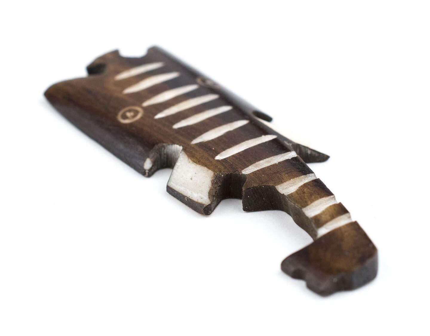 The Bead Chest Elephant Head Batik Bone Pendant 20mm Kenya African Brown Handmade