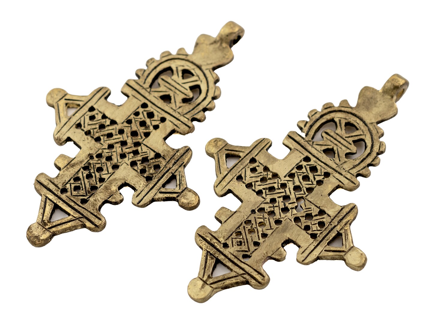 The Bead Chest Ethiopian Coptic Cross Pendant Large 95mm African Brass Brass Large Hole Handmade