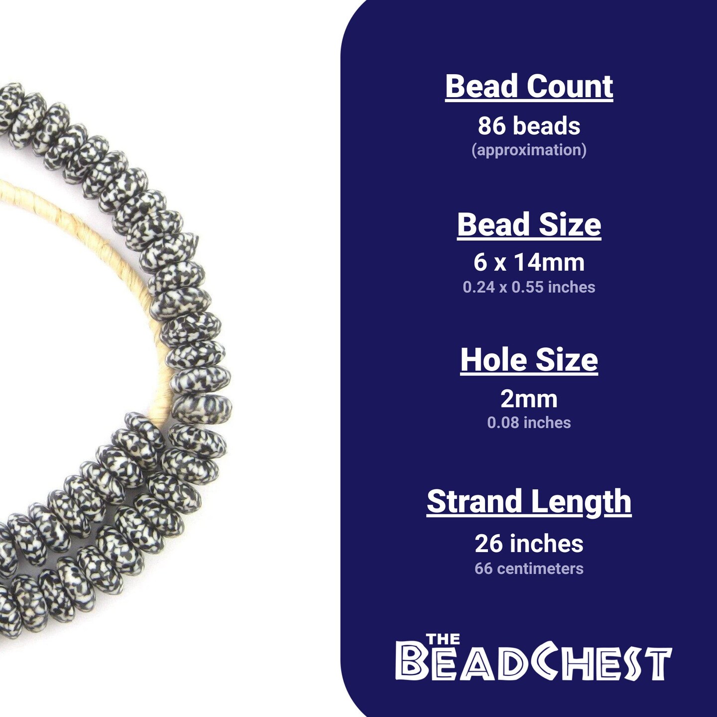 The Bead Chest Fused Rondelle Recycled Glass Beads 14mm Black & White, 24-Inch Strand, Handmade in Ghana for Jewelry Making & Crafts | Approximately 86 Beads