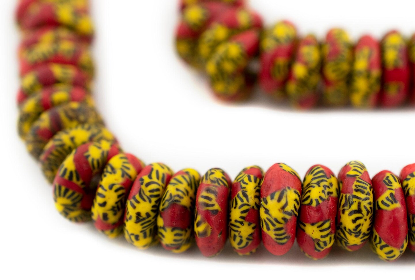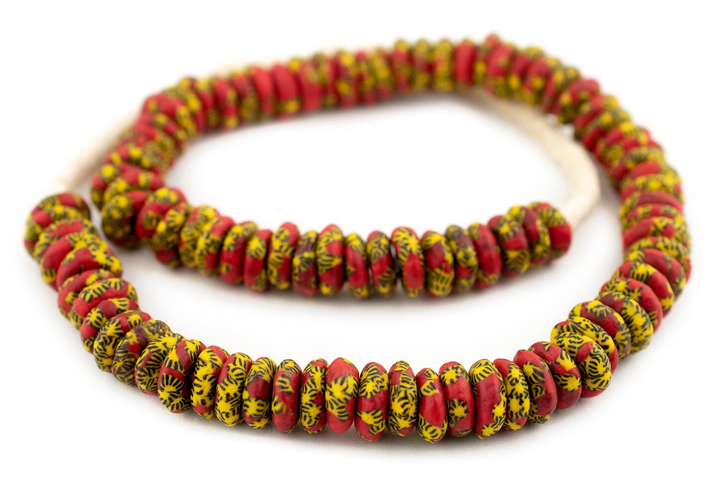 The Bead Chest Fused Rondelle Recycled Glass Beads 14mm Sun & Fire, 24-Inch Strand, Handmade in Ghana for Jewelry Making & Crafts | Approximately 95 Beads