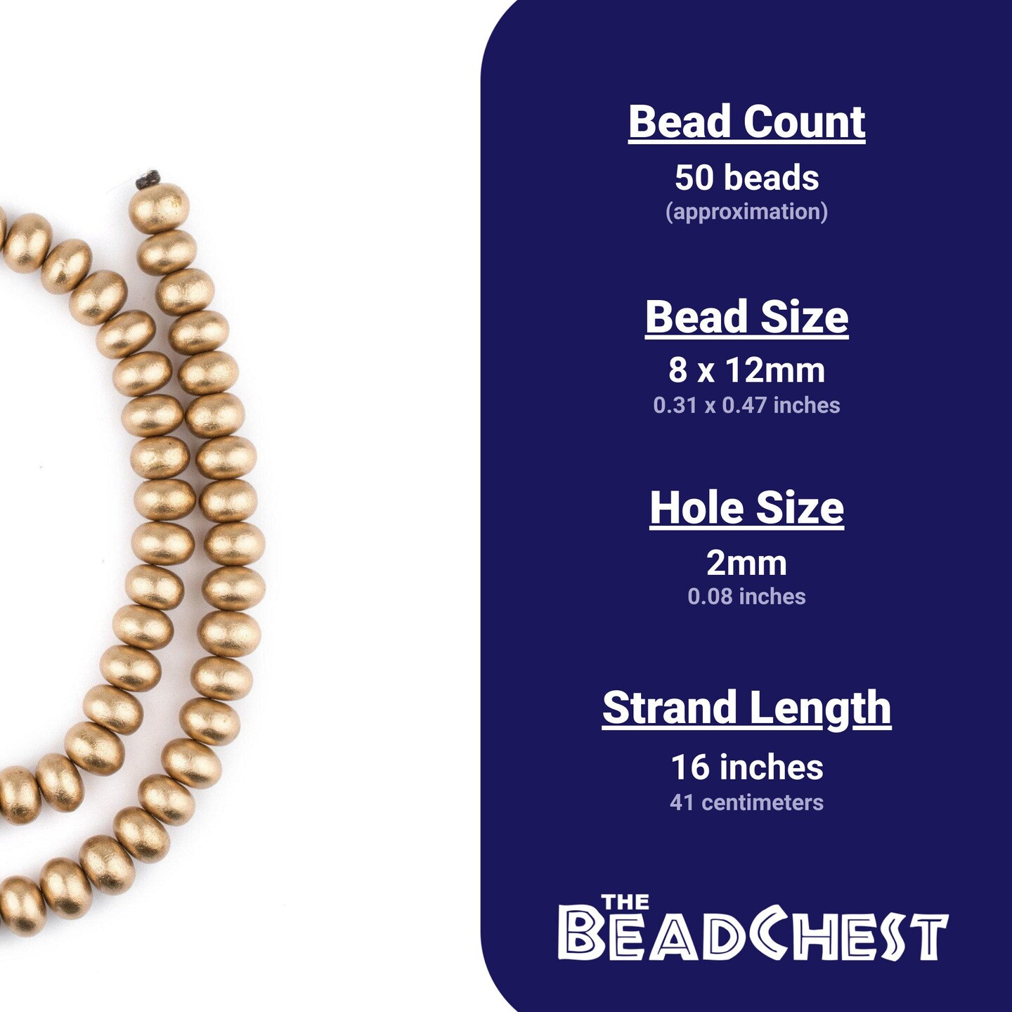 The Bead Chest Gold Abacus Natural Wood Beads (8x12mm): Organic Eco-Friendly Wooden Bead Strand for DIY Jewelry, Crafts, Necklace and Bracelet Making