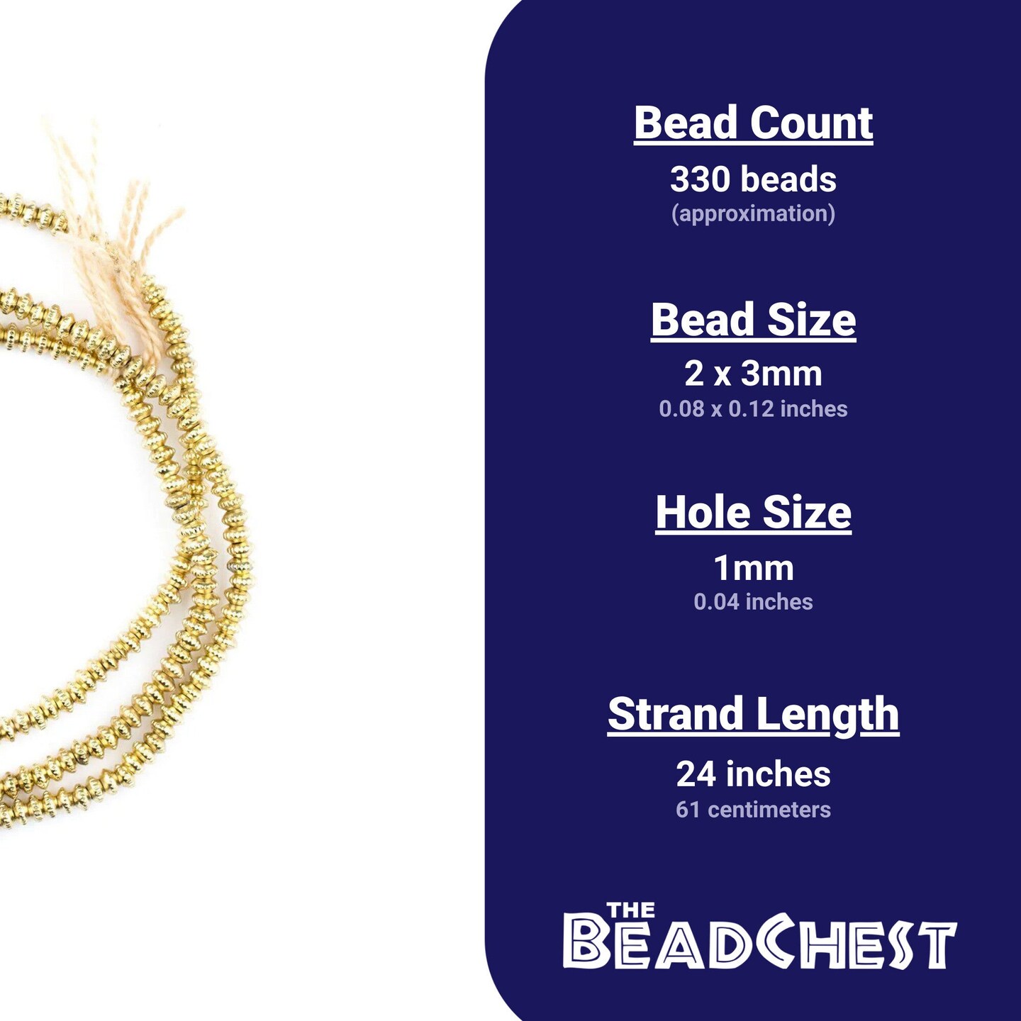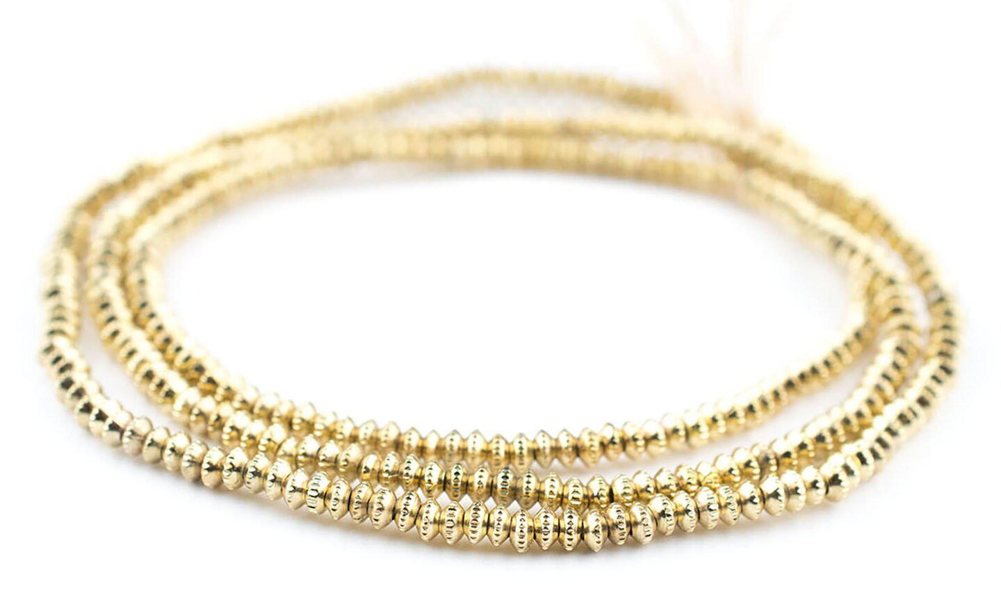 The Bead Chest Gold Patterned Heishi Beads 3mm Brass 24 Inch Strand