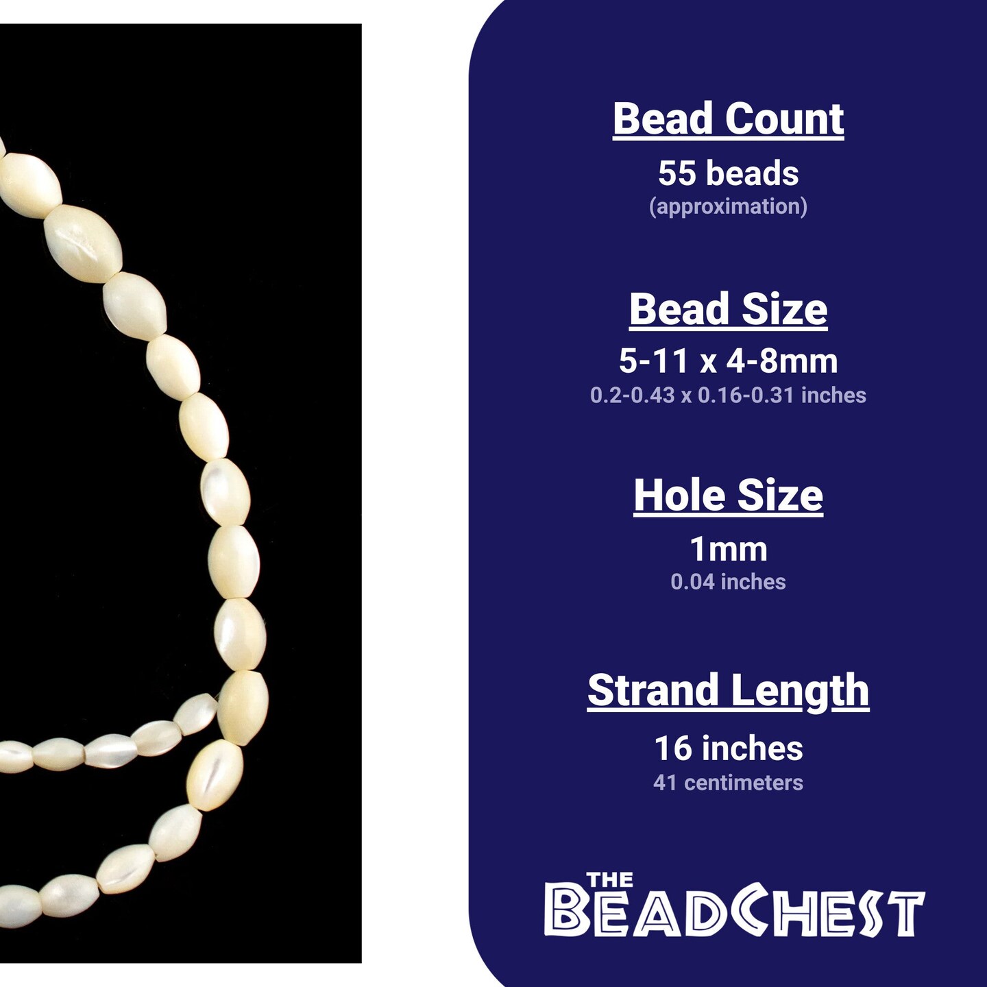 The Bead Chest Graduated Oval Mother of Pearl Beads (4-8mm)