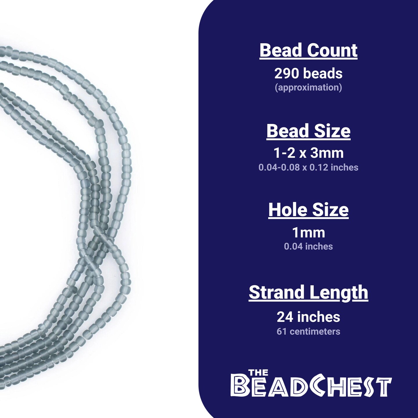 The Bead Chest Grey Matte Glass Seed Beads (3mm) - 24 inch Strand of Quality Glass Beads