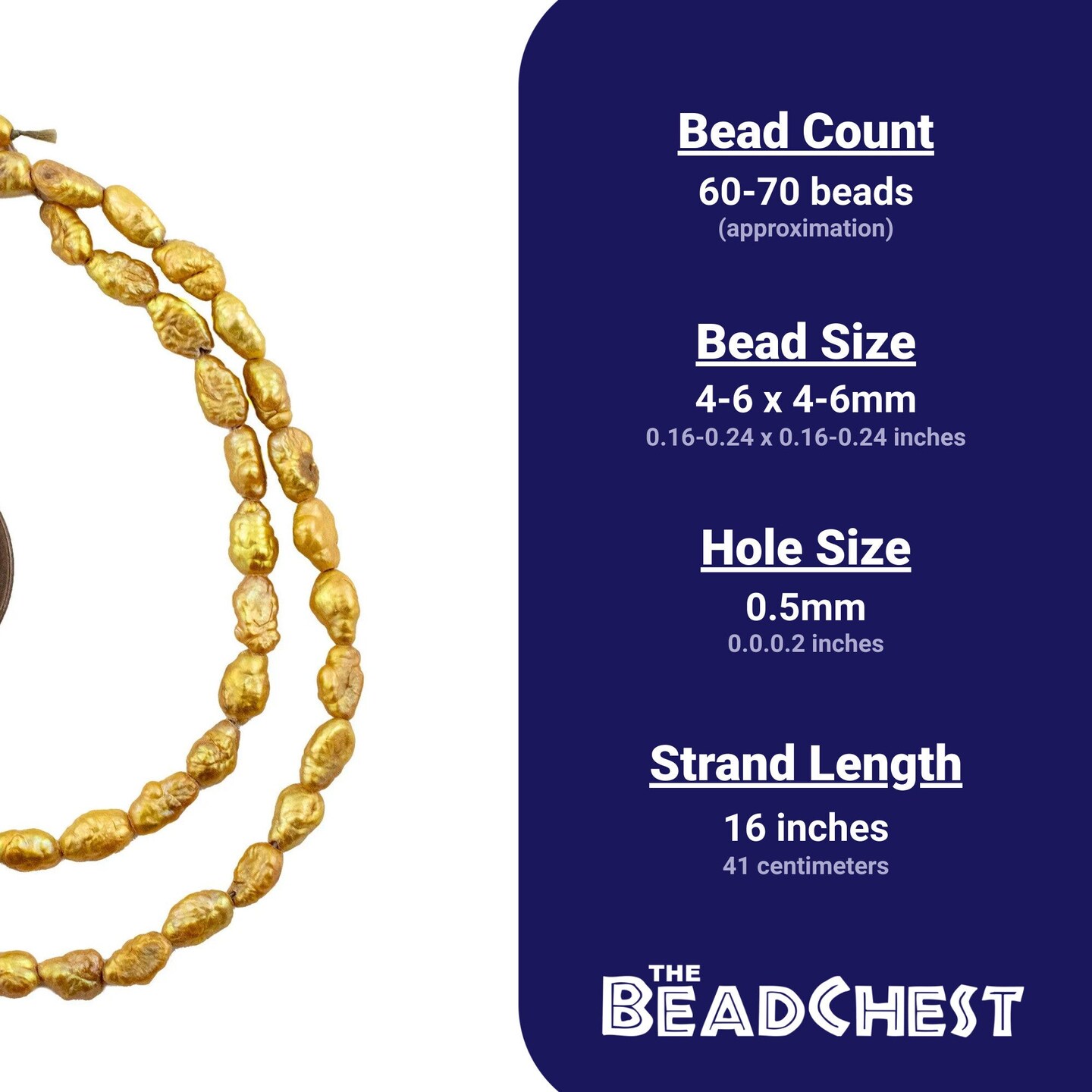 The Bead Chest Japanese Rice Pearl Beads: Vintage Gold 4mm Elegance | Full Strand