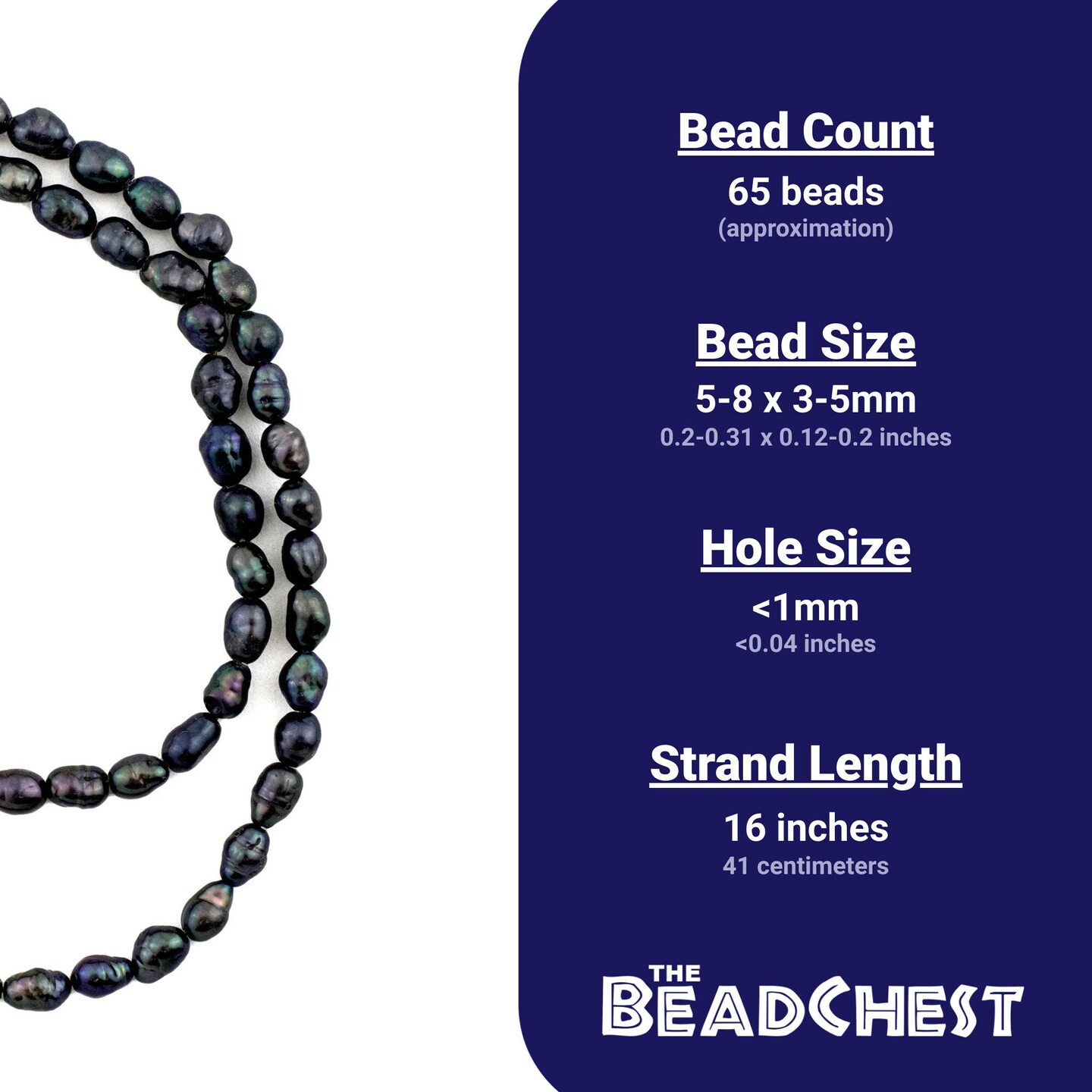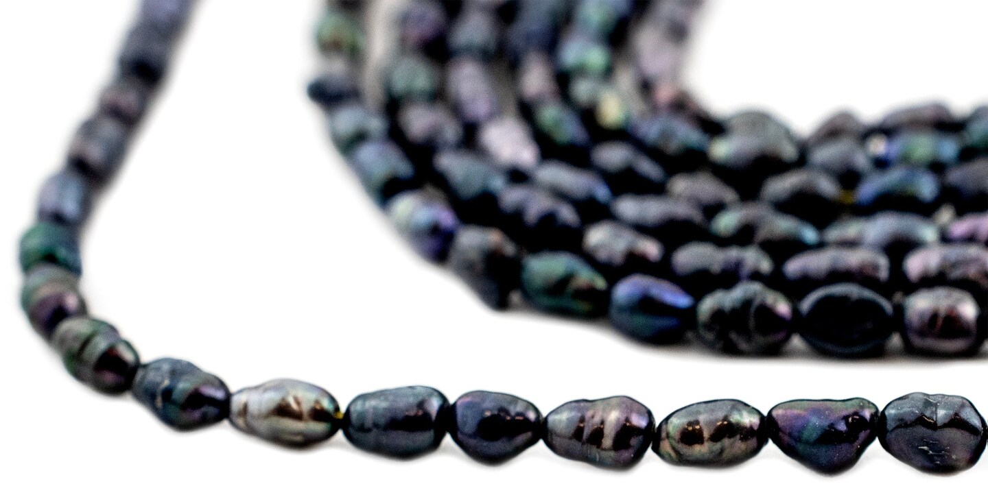 The Bead Chest Japanese Rice Pearl Beads: Vintage Iridescent Gunmetal 4mm Elegance | Full Strand