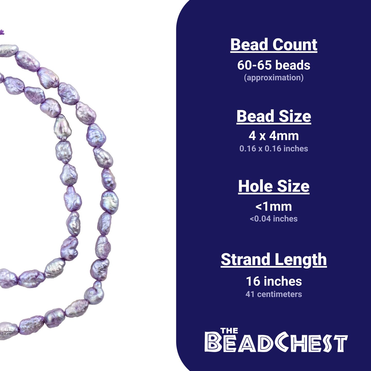The Bead Chest Japanese Rice Pearl Beads: Vintage Purple 4mm Elegance | Full Strand