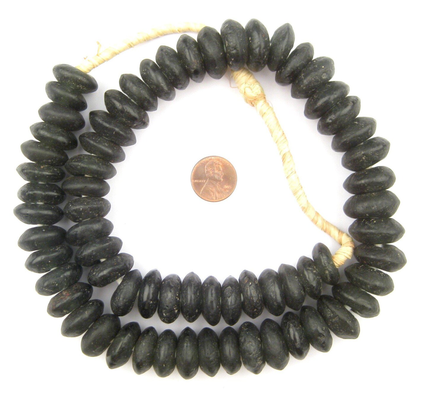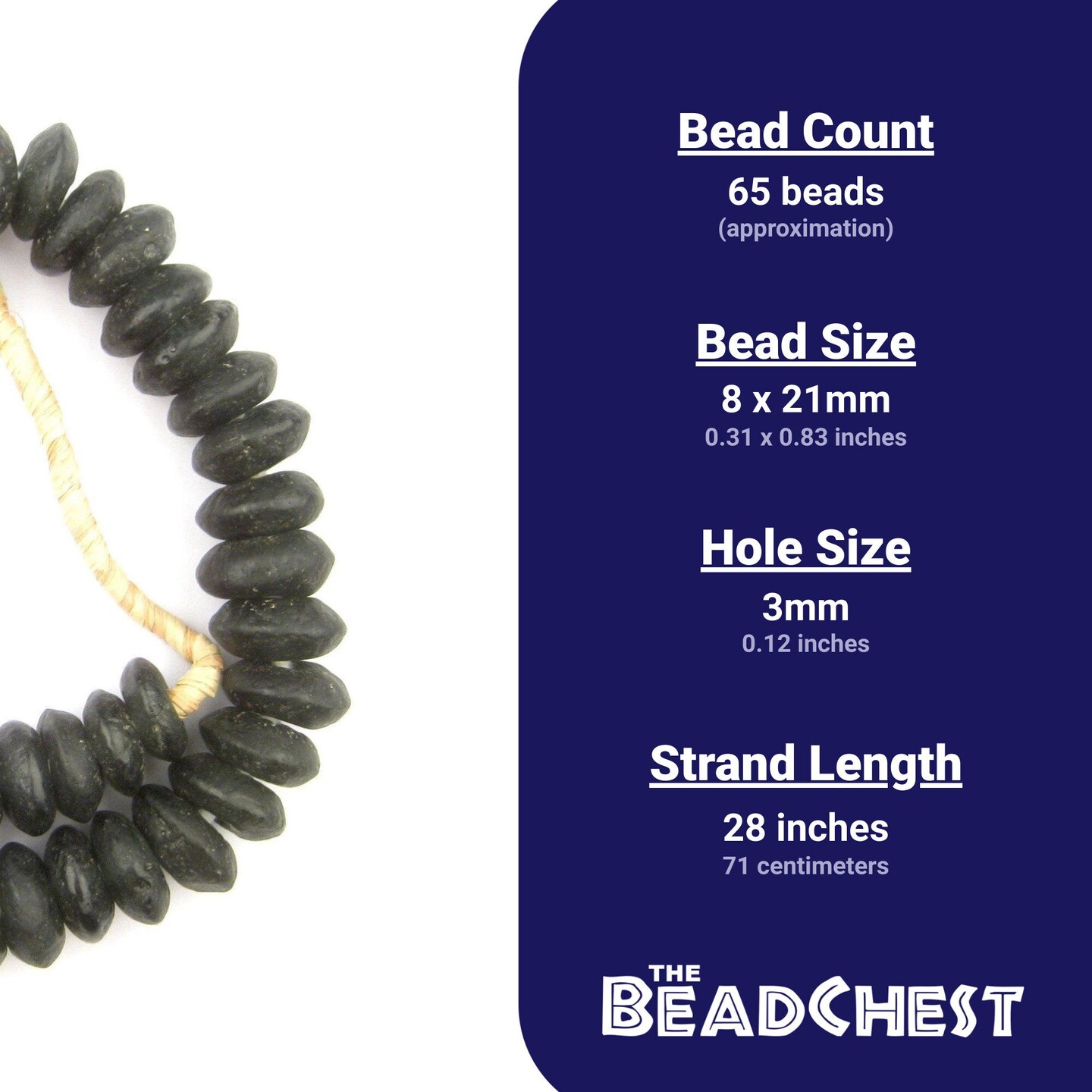 The Bead Chest Jumbo Rondelle Recycled Glass Beads: Extra Large African Disk Home Decor Beads for DIY Jewelry, Coffee Table, and Interior Design (Black)