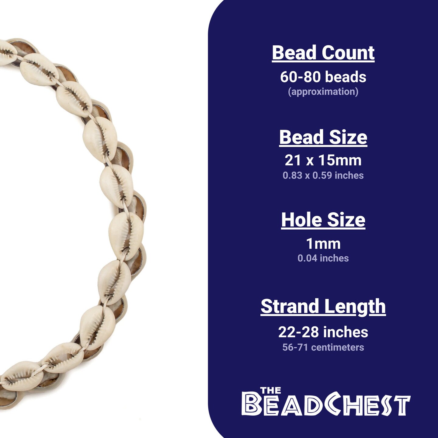 The Bead Chest Kenyan Cowrie Shell Beads 15mm African White Unusual 22-24 Inch Strand Handmade