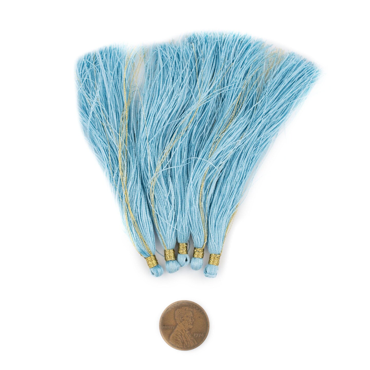 The Bead Chest Light Blue 9cm Silk Tassels (5 Pack)