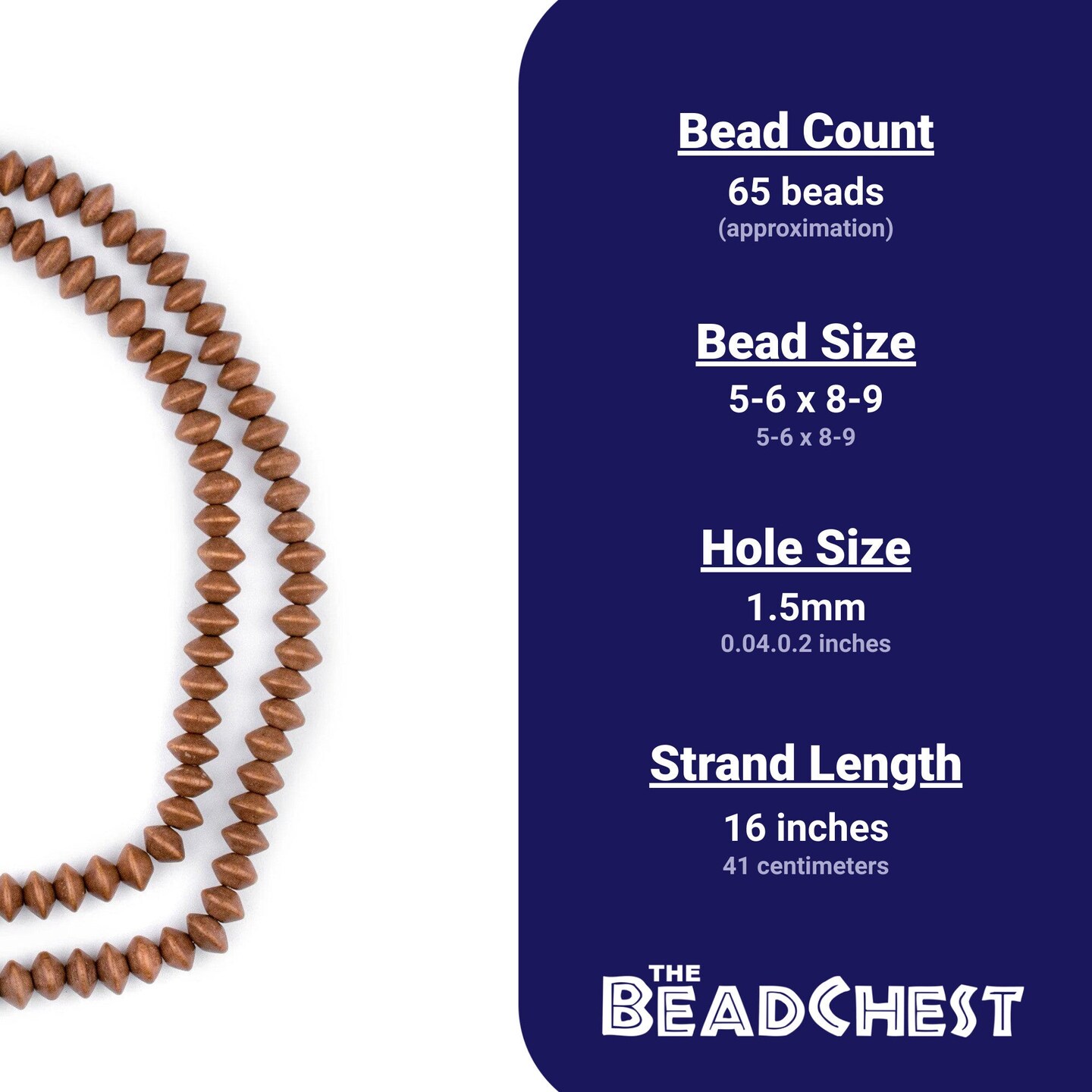 The Bead Chest Light Brown Bicone Natural Wood Beads (5x8mm): Organic Eco-Friendly Wooden Bead Strand for DIY Jewelry, Crafts, Necklace and Bracelet Making