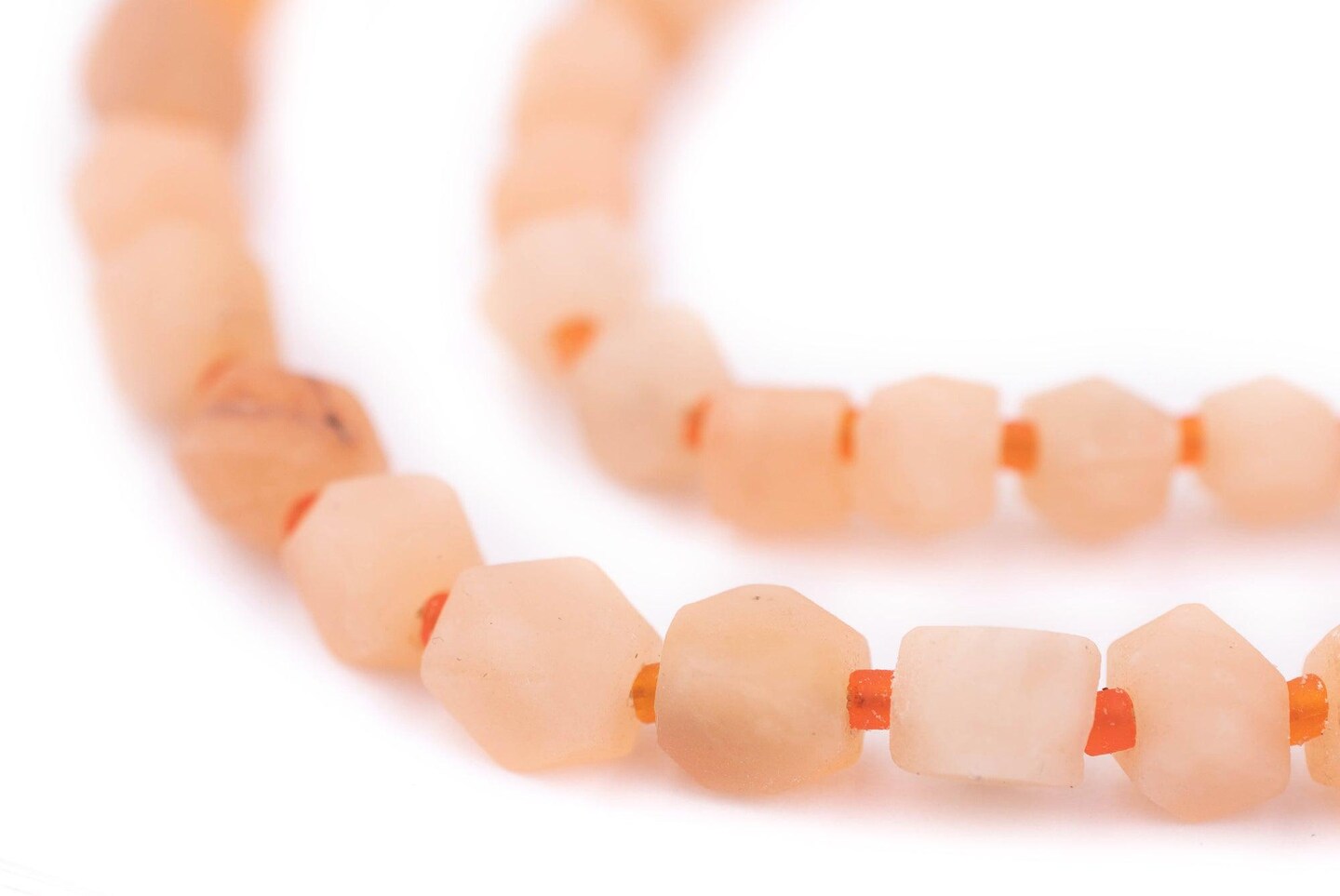 The Bead Chest Matte Natural Cornerless Cube Calcite Beads 7mm Afghanistan Orange Faceted Gemstone Large Hole 16 Inch Strand