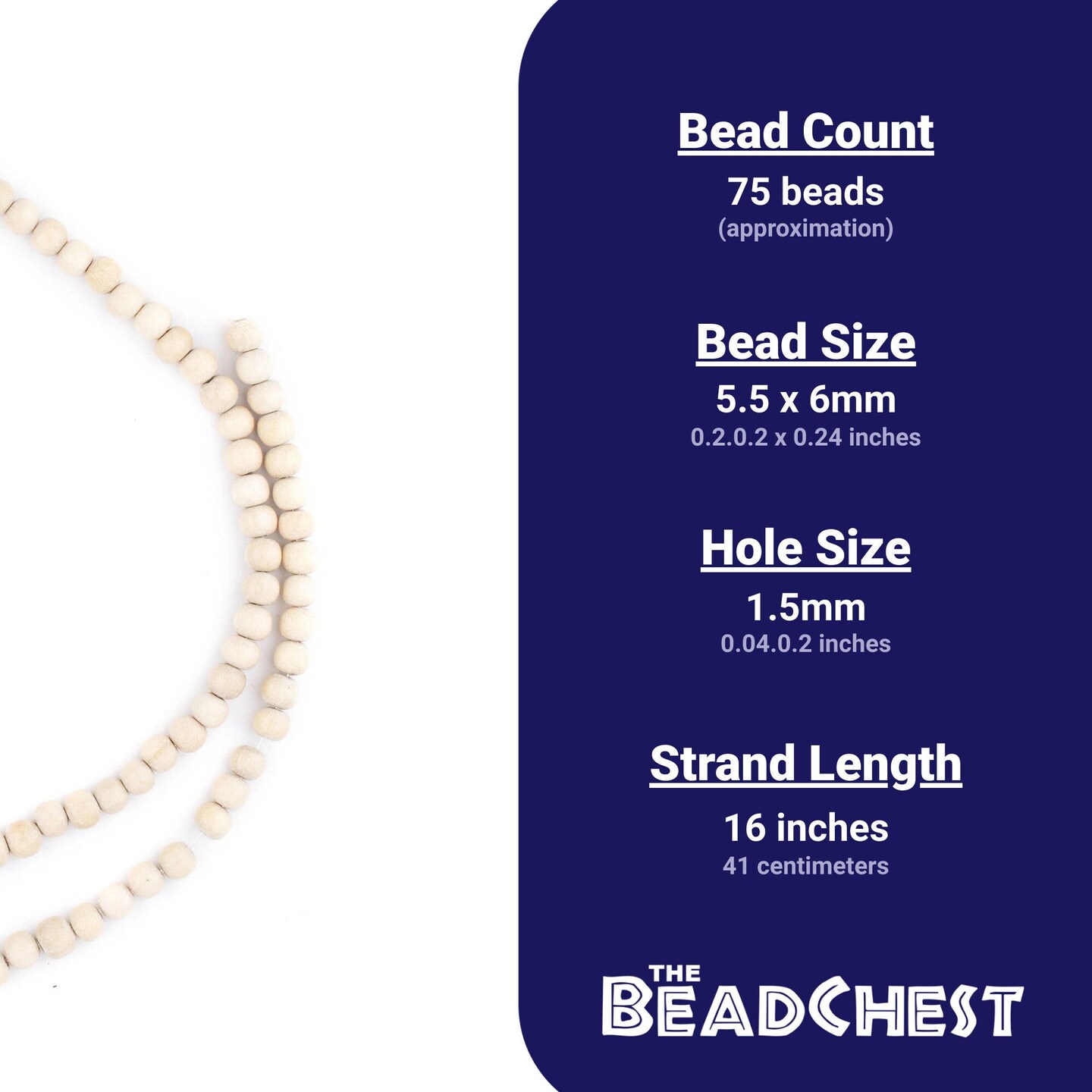 The Bead Chest Natural 6mm Wooden Beads in Cream for Jewelry Making – Round Loose Wood Spacer Beads I Approximately 75 Beads