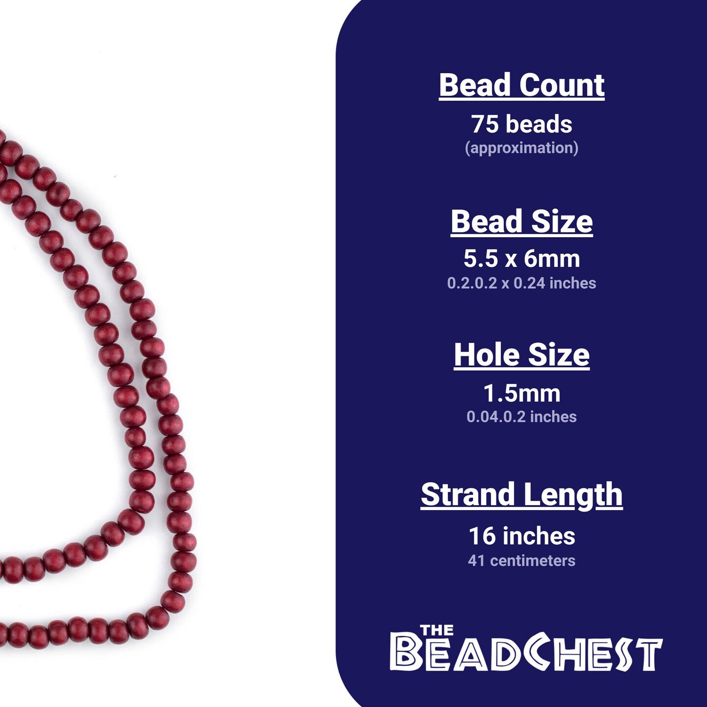 The Bead Chest Natural 6mm Wooden Beads in Red for Jewelry Making – Round Loose Wood Spacer Beads I Approximately 75 Beads