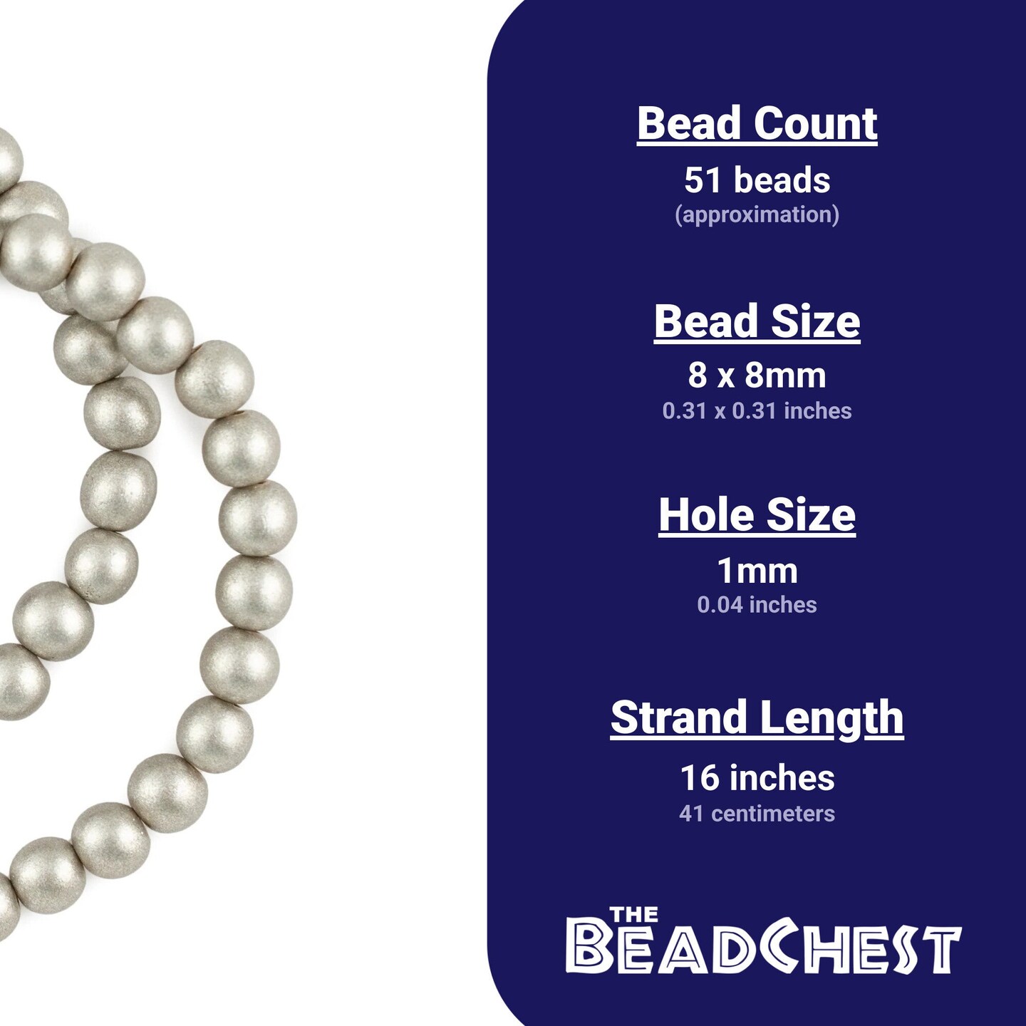The Bead Chest Natural 8mm Wooden Beads in Antiqued Silver for Jewelry Making – Round Loose Wood Spacer Beads I Approximately 51 Beads