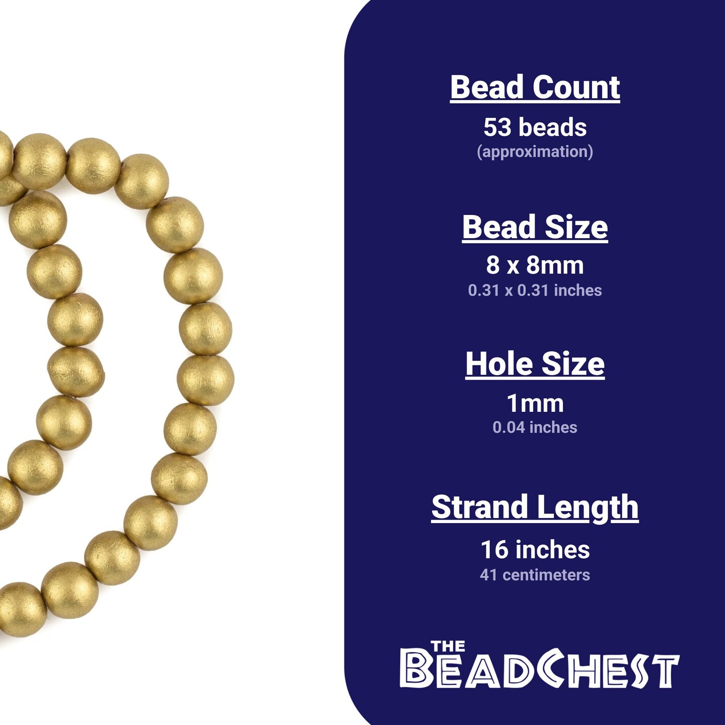 The Bead Chest Natural 8mm Wooden Beads in Yellow Gold for Jewelry Making – Round Loose Wood Spacer Beads I Approximately 53 Beads