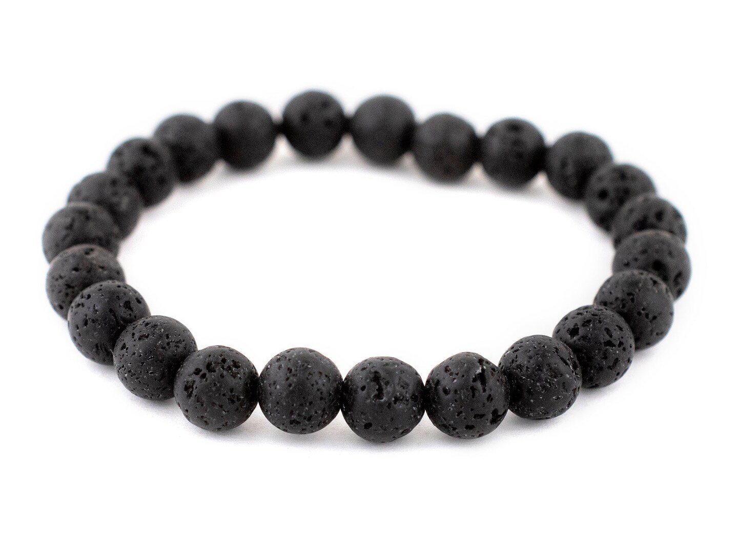 The Bead Chest Natural Lava Stretch Bracelet Black Round Stone