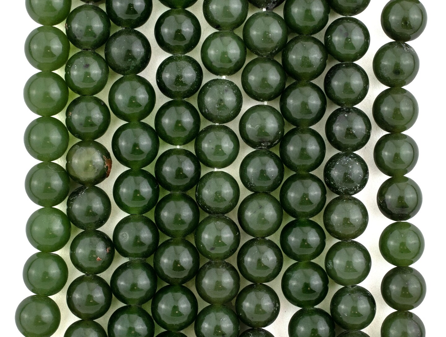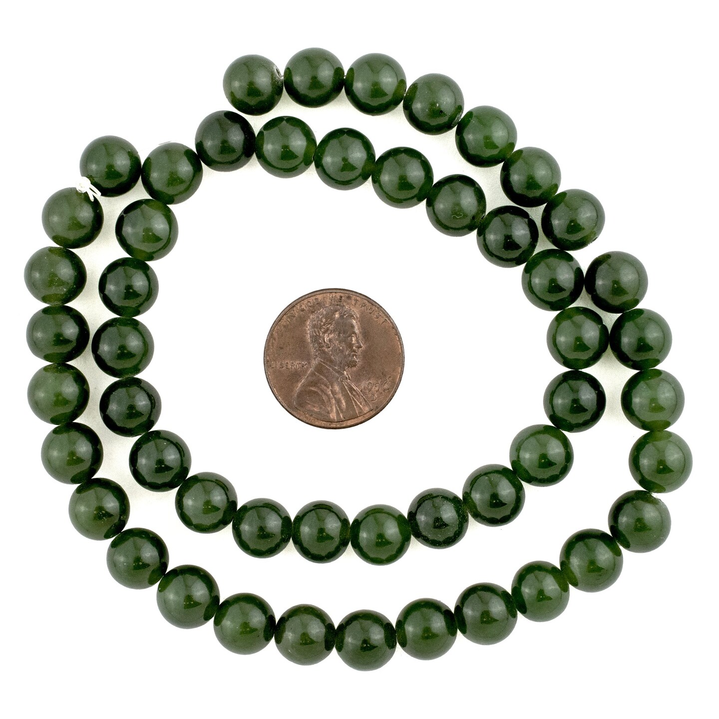 The Bead Chest Nephrite Jade Beads: Round Dark Green Beading Stones for Jewelry Makers, Full Strand