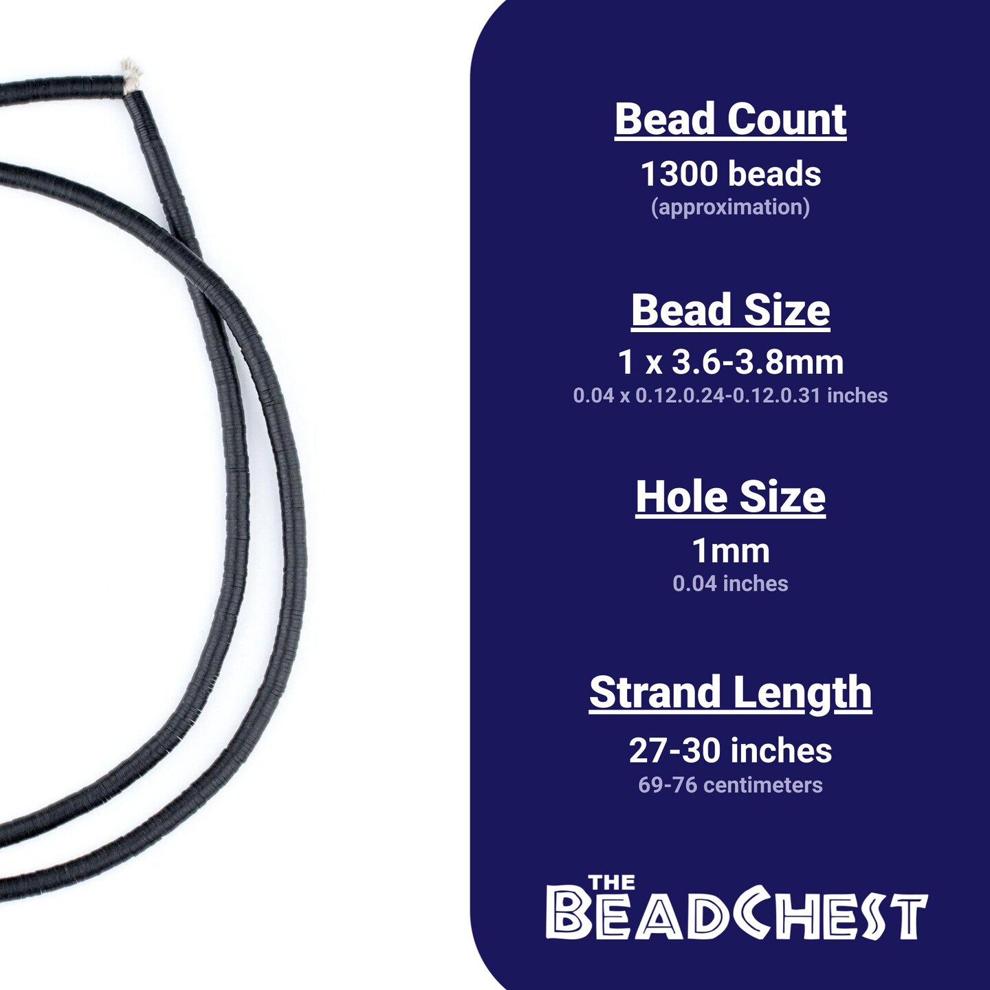 The Bead Chest Old Black Phono Record Vintage Vinyl Beads 4mm Ghana African Heishi 27-30 Inch Strand Handmade
