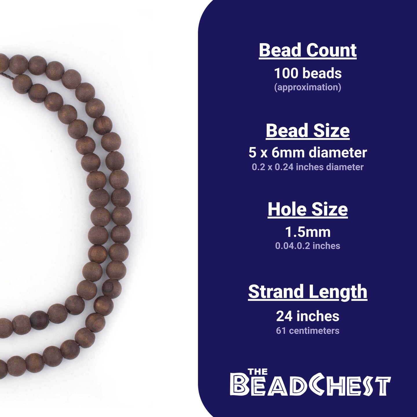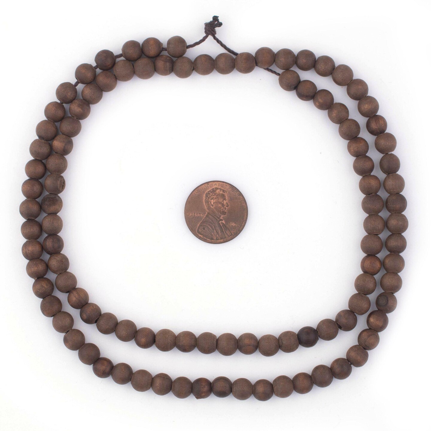 The Bead Chest Olive Wood Beads - Full Strand of Round Christian Rosary Prayer Beads (6mm, Vintage)