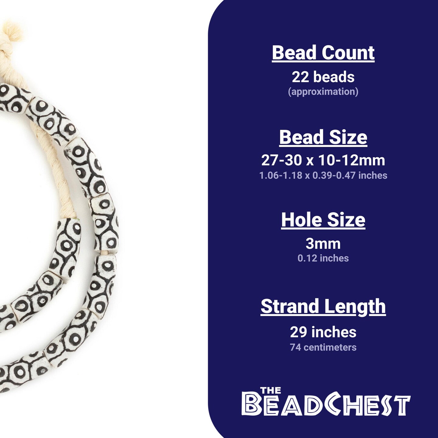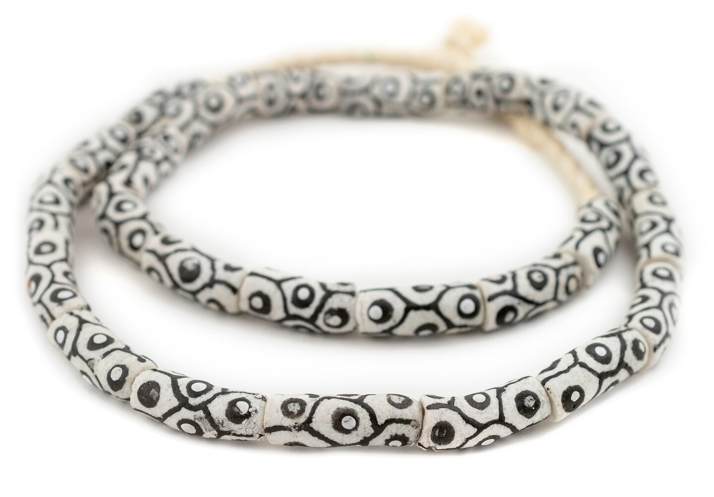 The Bead Chest Painted African Krobo Beads - Full Strand of Ghanaian Tribal Glass Beads for Necklace or Jewelry Making (Black & White)