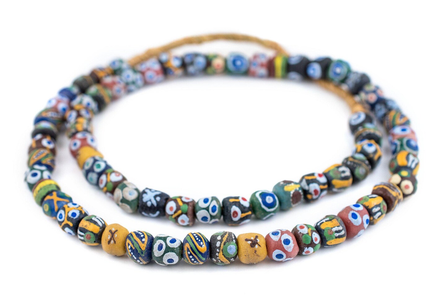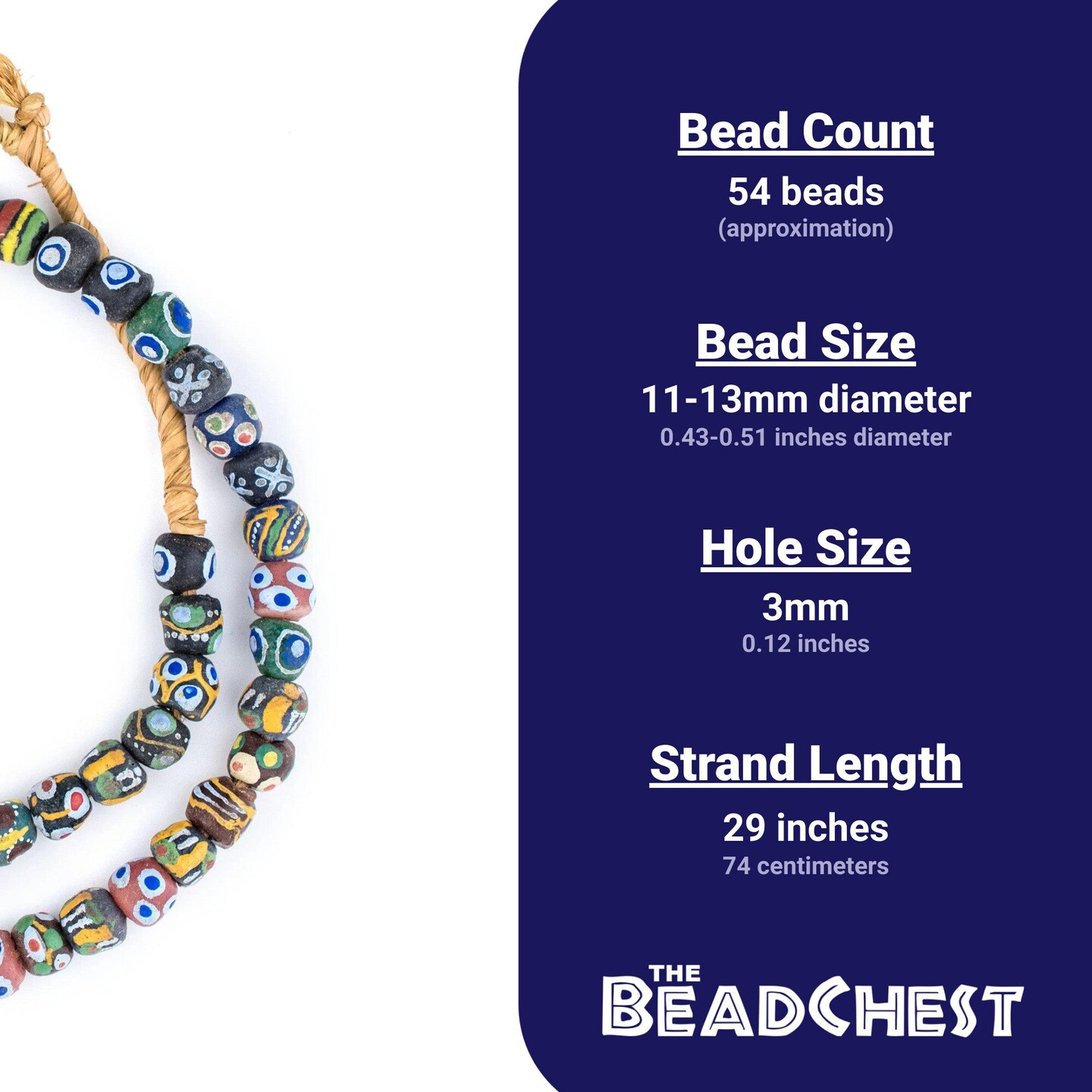 The Bead Chest Painted African Krobo Beads - Full Strand of Ghanaian Tribal Glass Beads for Necklace or Jewelry Making (Mixed Medley)