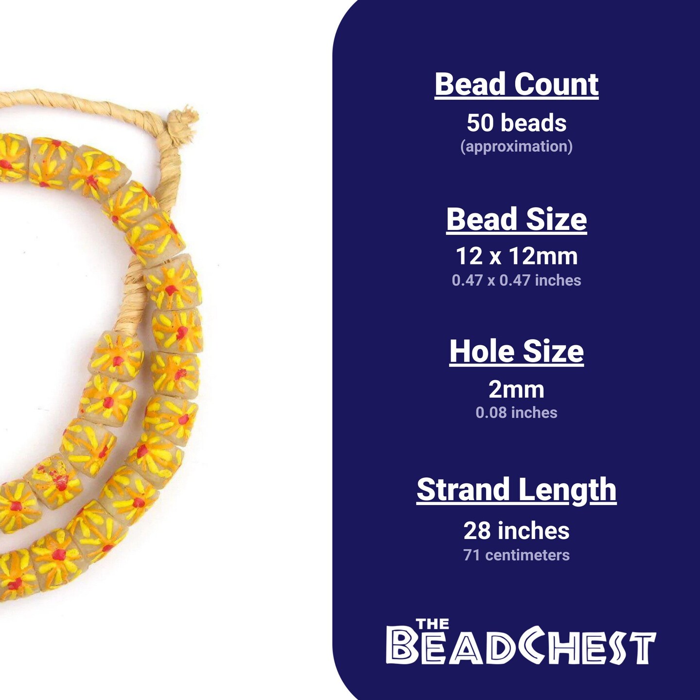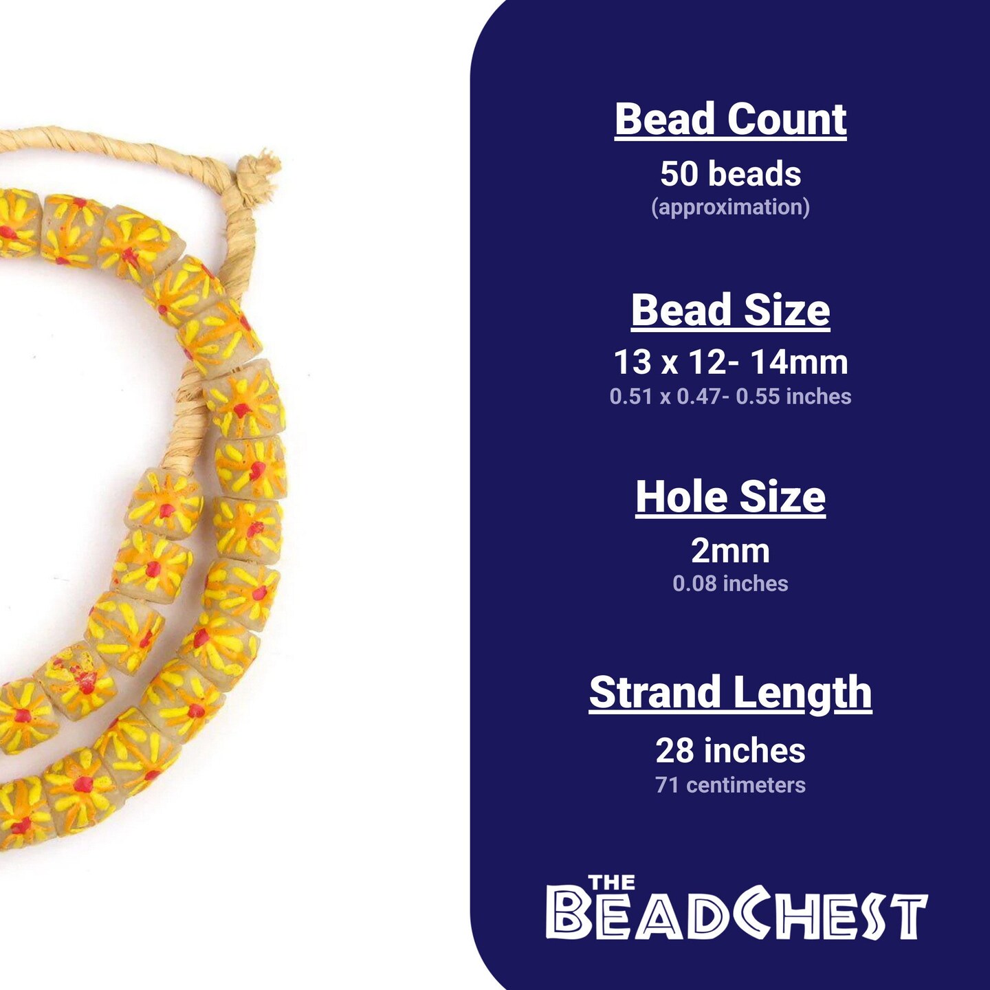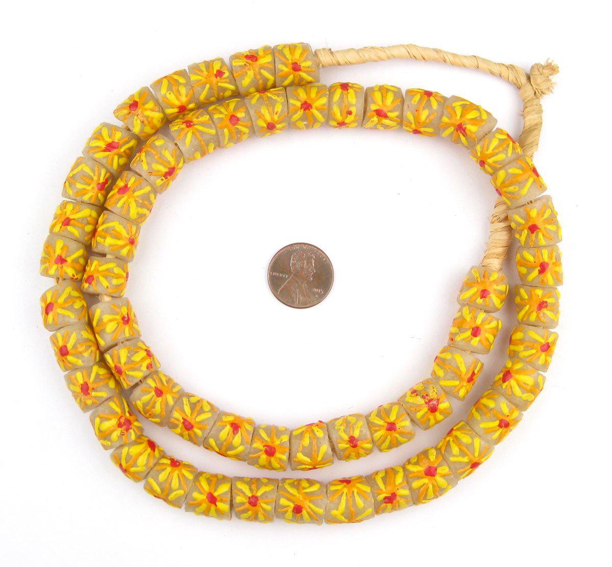 The Bead Chest Painted African Krobo Beads - Full Strand of Ghanaian Tribal Glass Beads for Necklace or Jewelry Making (Sunshine)