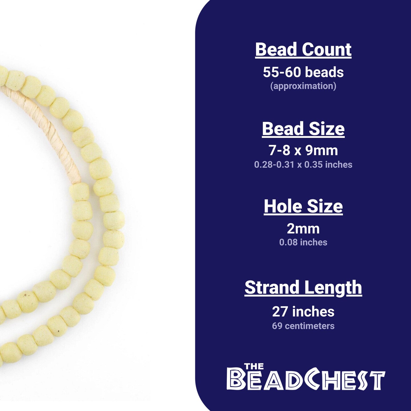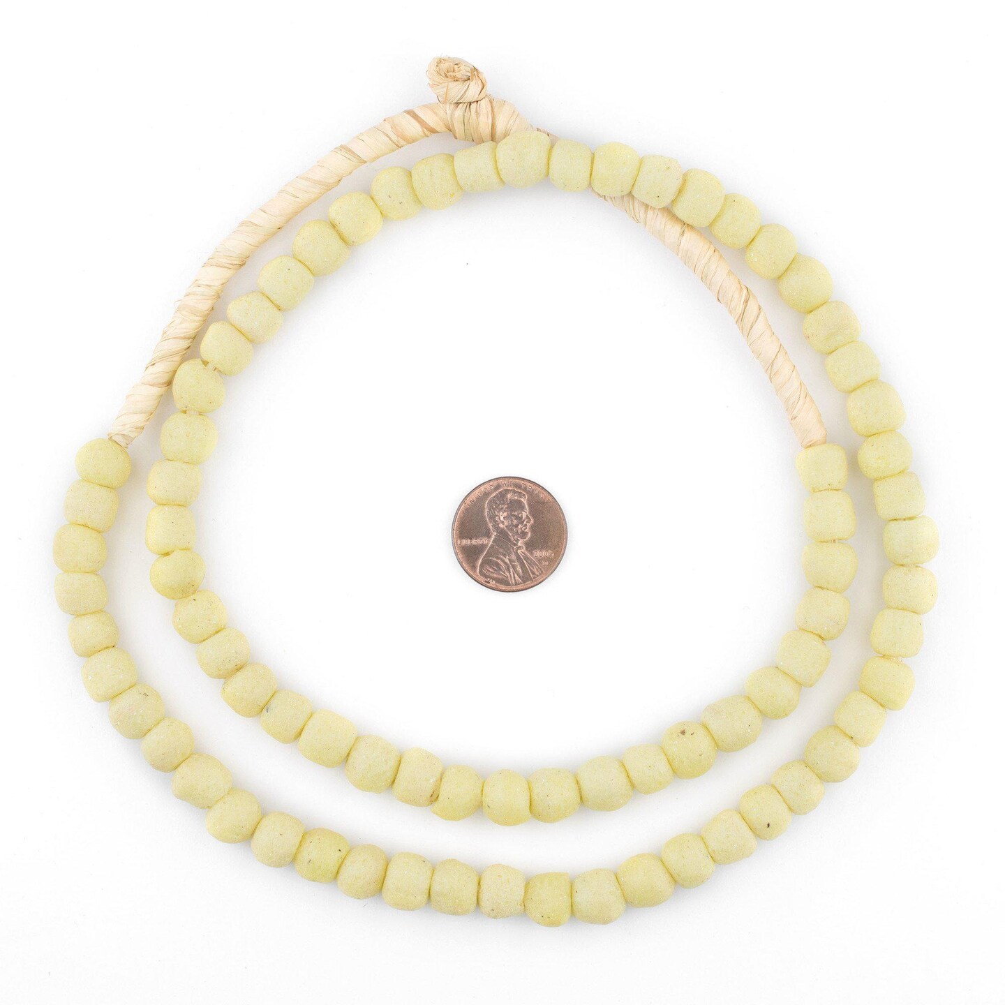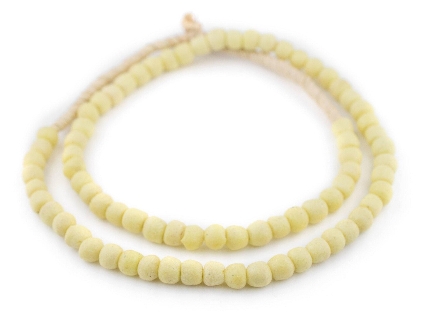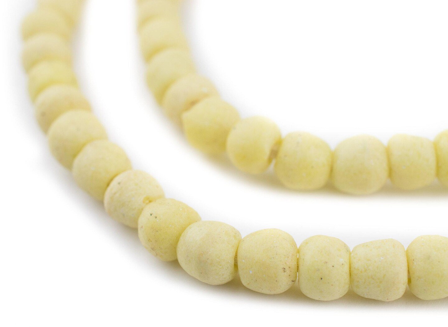 The Bead Chest Pastel Yellow Opaque Recycled Glass Beads 9mm Ghana African Sea Glass Round Large Hole 27 Inch Strand Handmade Fair Trade