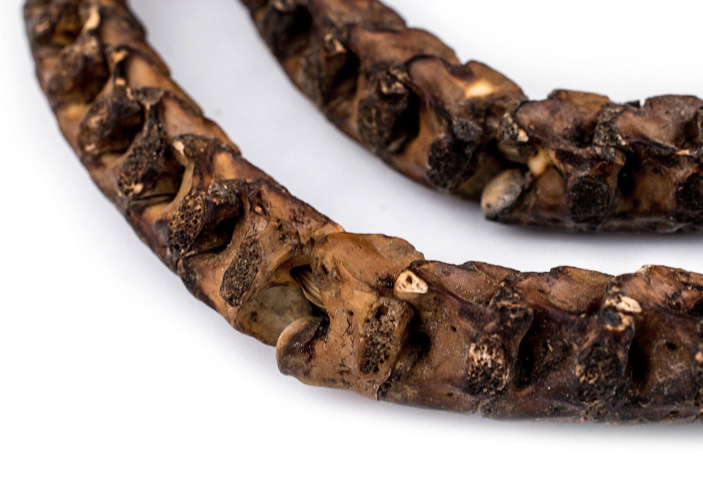 The Bead Chest Real Snake Vertebrae Beads from Africa Extra Large 18mm Nigeria African Brown Interlocking Bone Large Hole 32-34 Inch Strand