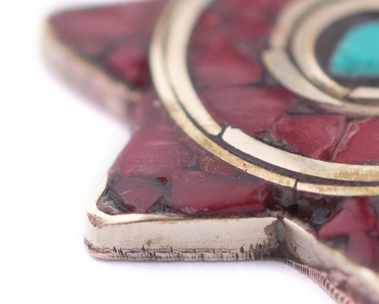 The Bead Chest Red & Blue Nepal Star of David Pendant Multicolor Brass Large Hole
