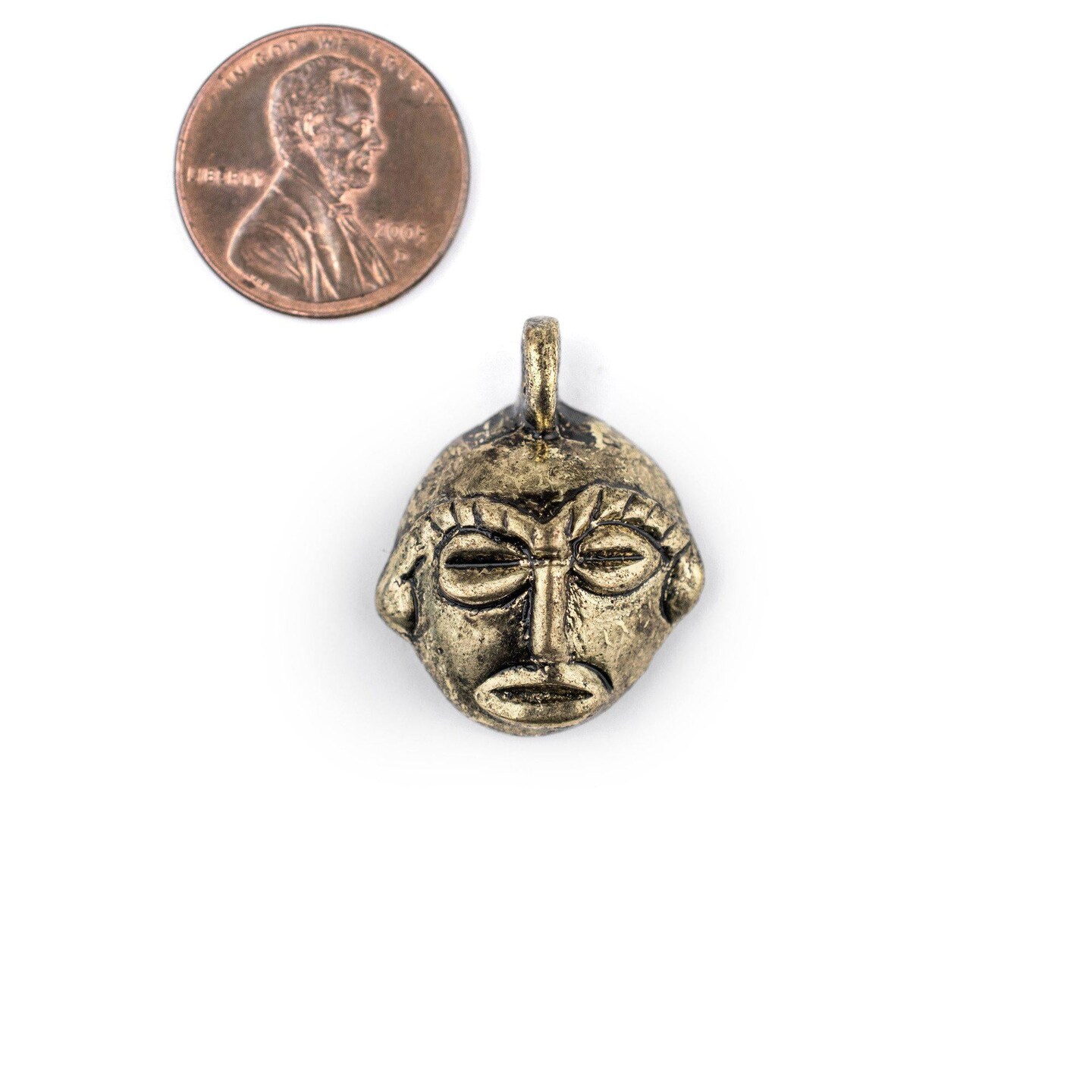 The Bead Chest Round African Brass Mask Pendant (21x27mm): Genuine West African Mask Design for DIY Jewelry & Necklaces