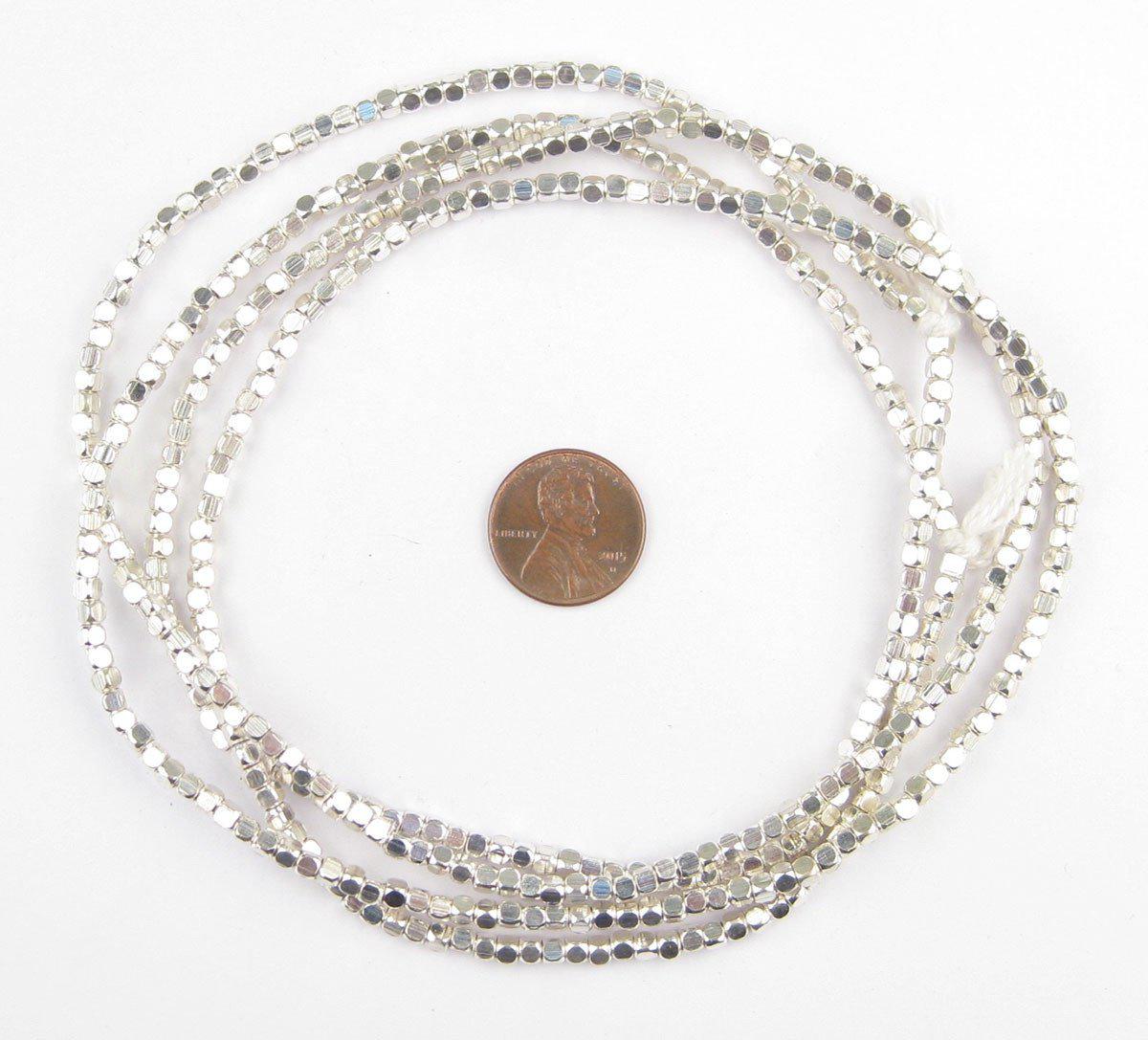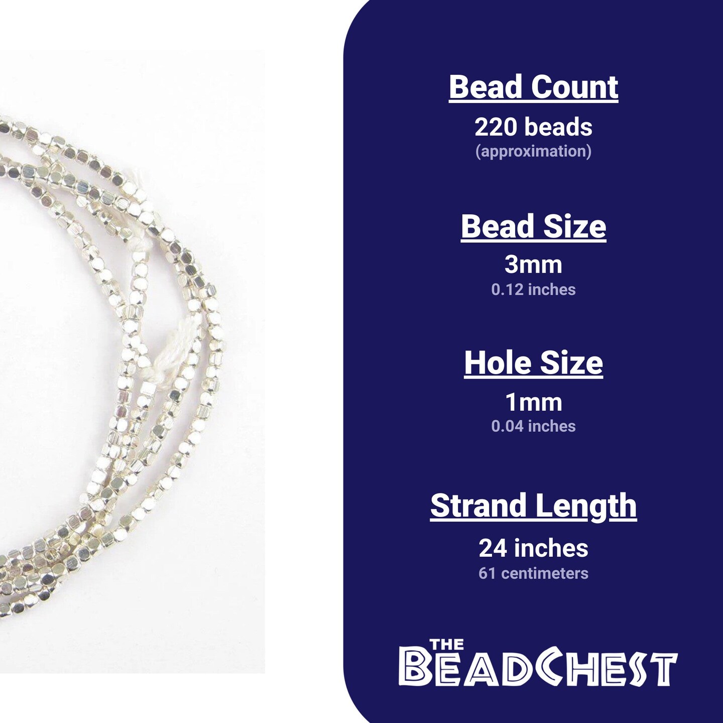 The Bead Chest Rounded Shiny Silver Cube Beads 3mm White Metal 24 Inch Strand