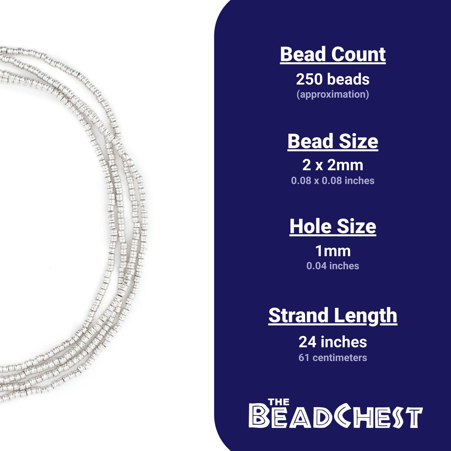 The Bead Chest Shiny Silver Double Heishi Beads (2mm)