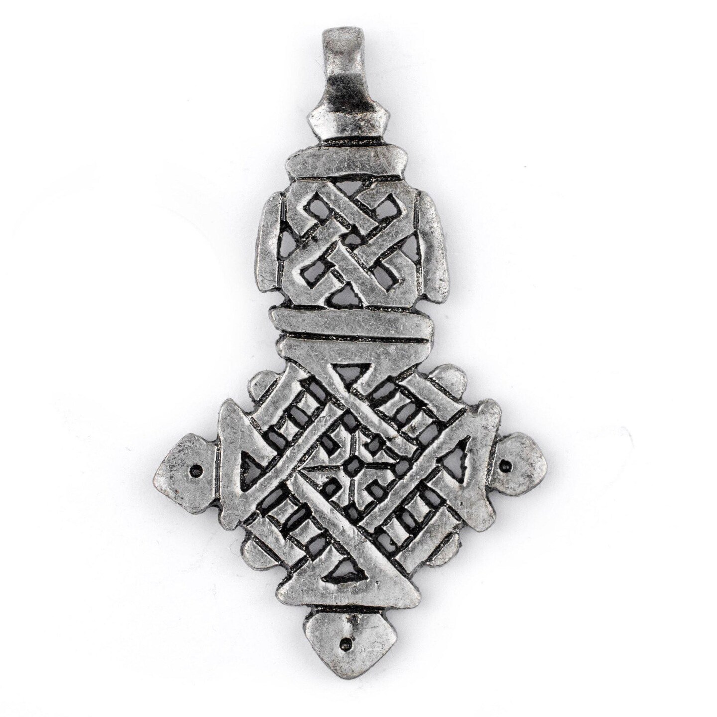 The Bead Chest Silver Ethiopian Coptic Cross Pendant, African Abyssinian Design, Orthodox Christian Pendant for Jewelry