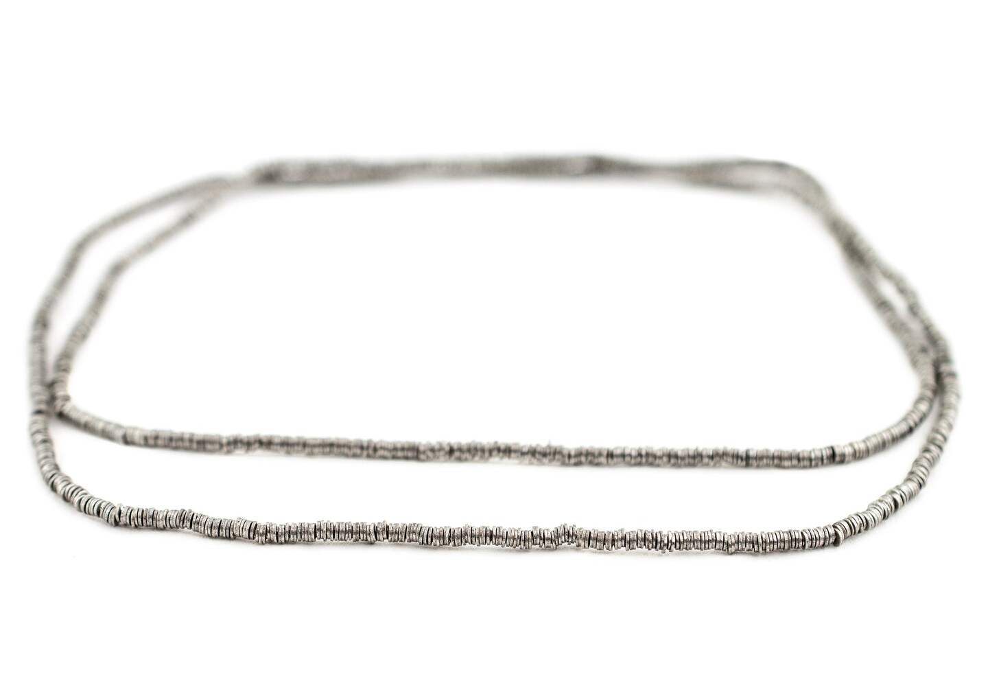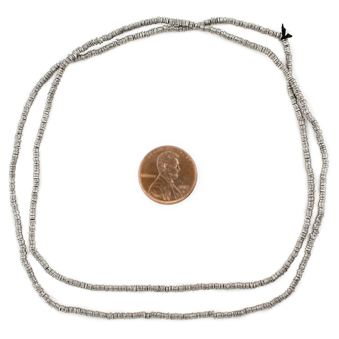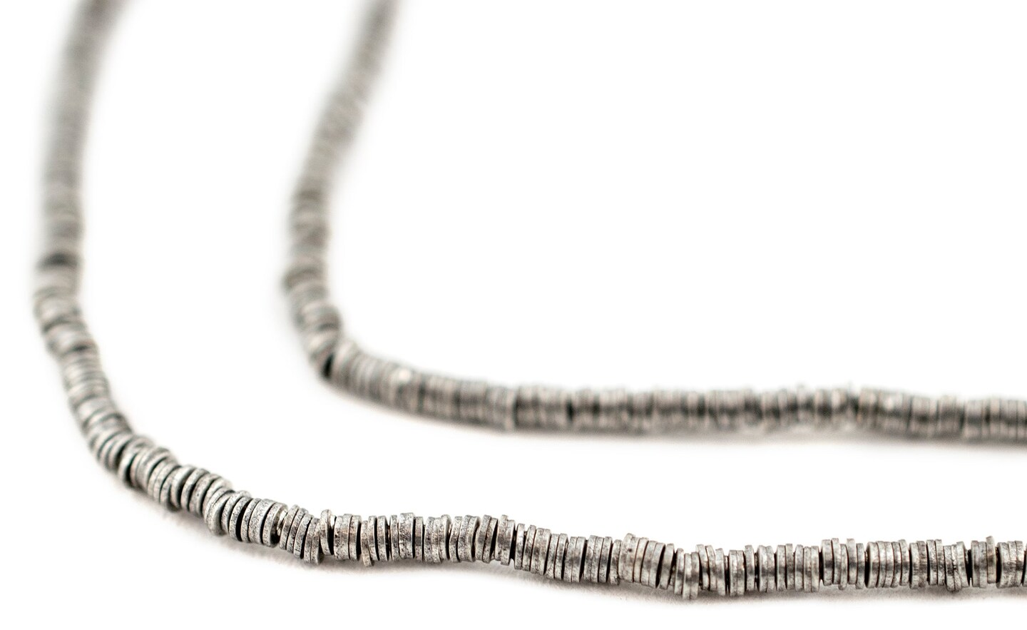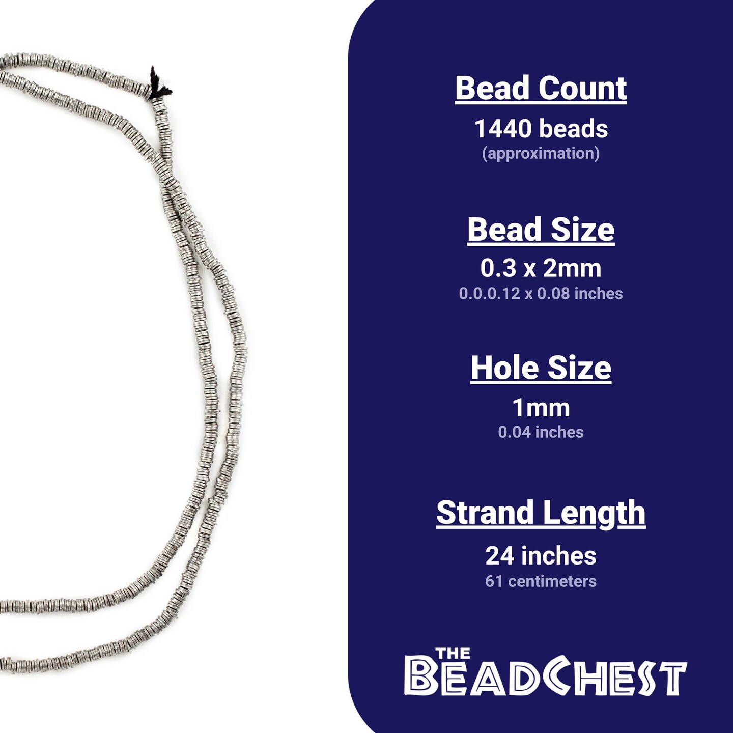 The Bead Chest Silver Flat Disk Heishi Beads (2mm), 24" Strand, Handmade for Jewelry Making & Crafts | Approximately 1440 Beads