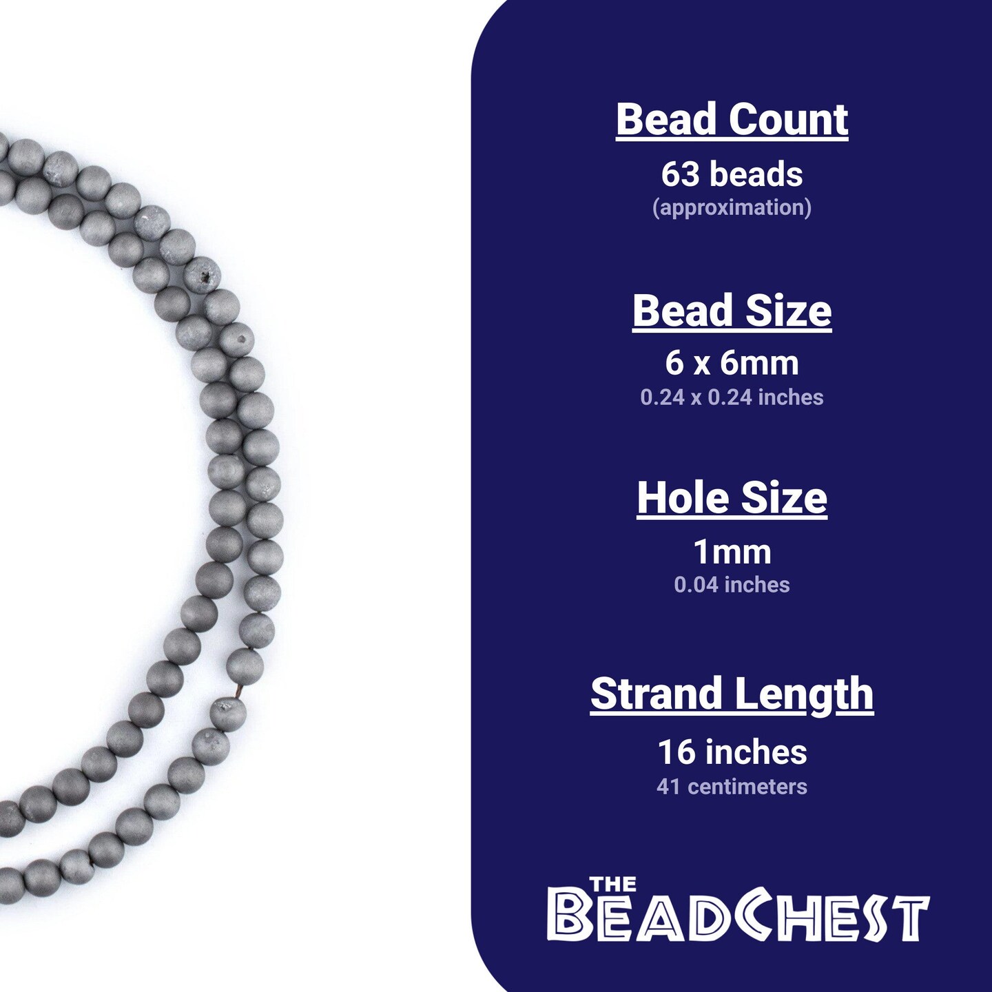 The Bead Chest Silver Round Druzy Agate Beads (6mm): Organic Gemstone Round Spherical Energy Stone Healing Power Crystal for Jewelry Bracelet Mala Necklace Making