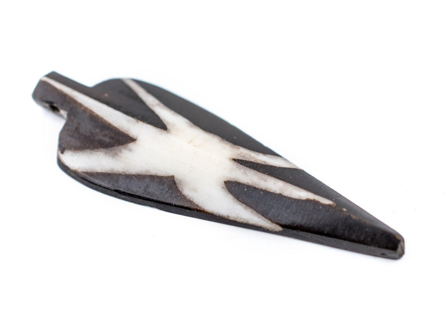 The Bead Chest Star Batik Bone Arrow Pendant 25mm Kenya African Black and White Handmade