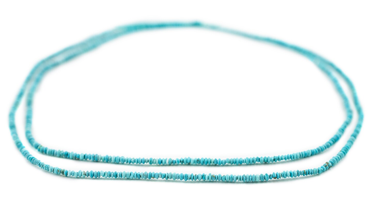 The Bead Chest Tiny Blue Turquoise Stone Saucer Heishi Beads 2mm Afghanistan Gemstone 15 Inch Strand