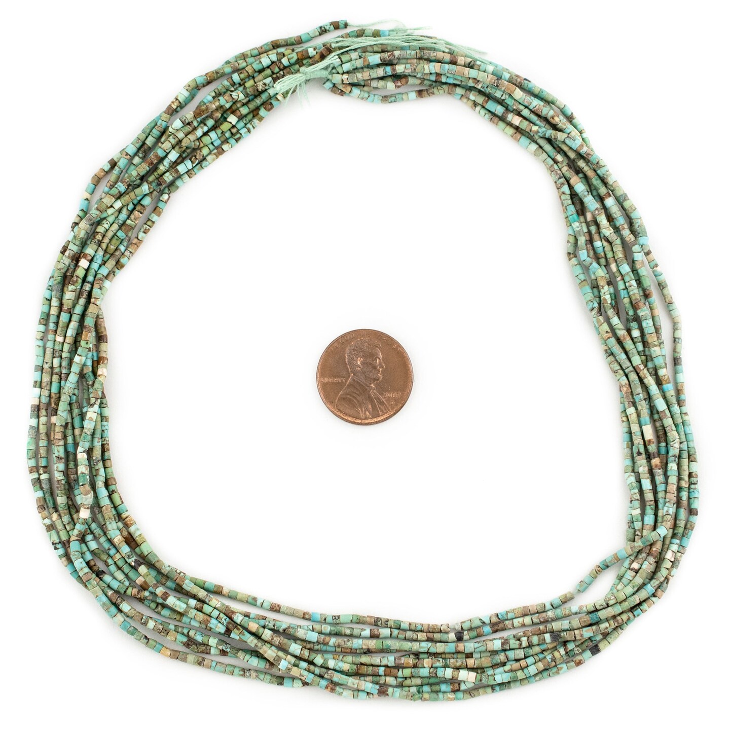 The Bead Chest Tiny Green Turquoise Heishi Beads 2mm Afghanistan Gemstone 14 Inch Strand