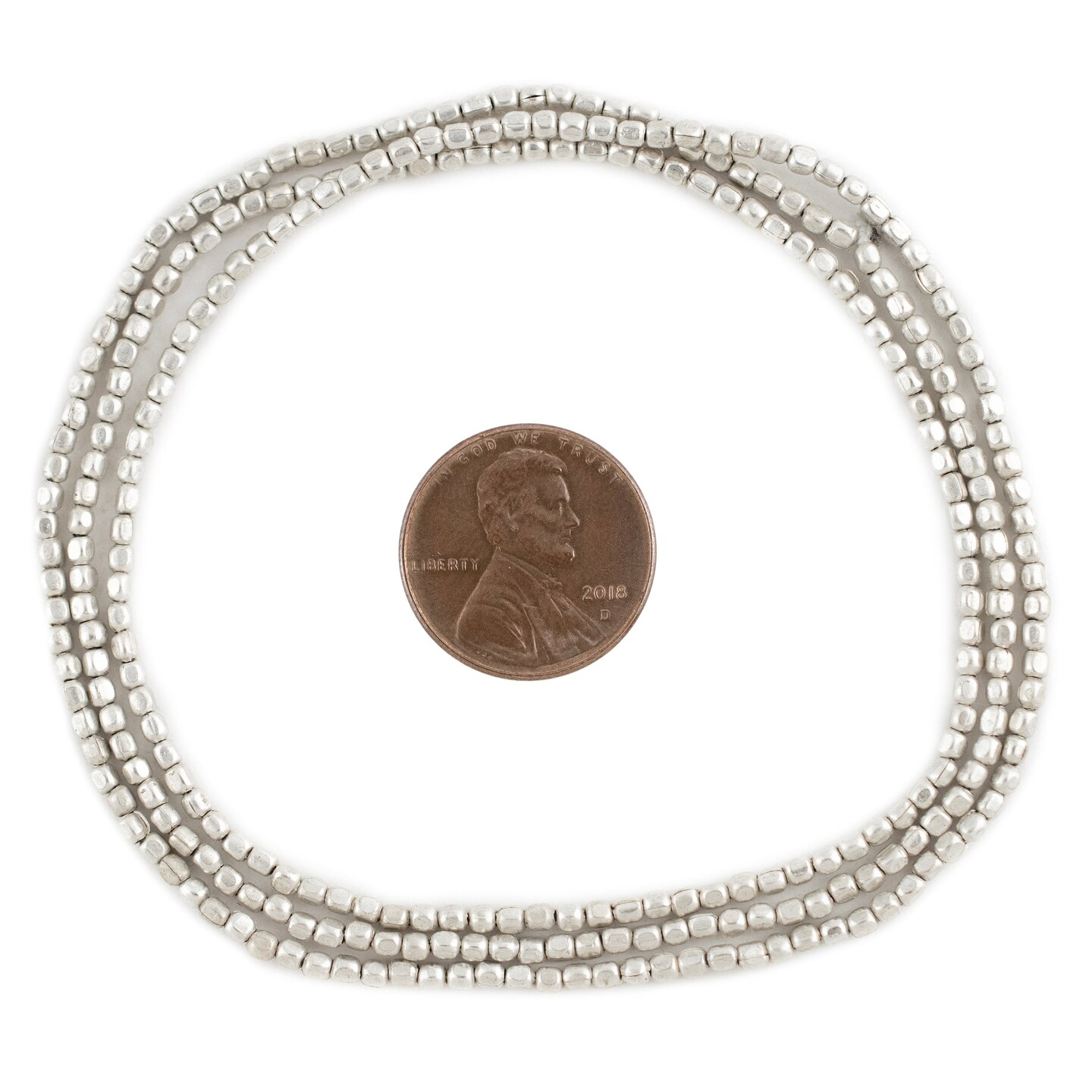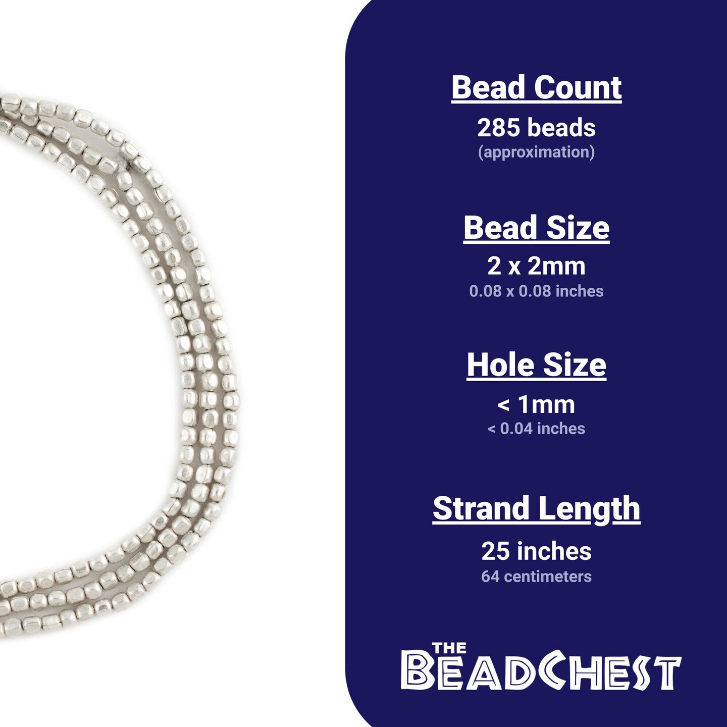 The Bead Chest Tiny Silver Rounded Rectangle Beads 2mm Cube White Metal 25 Inch Strand