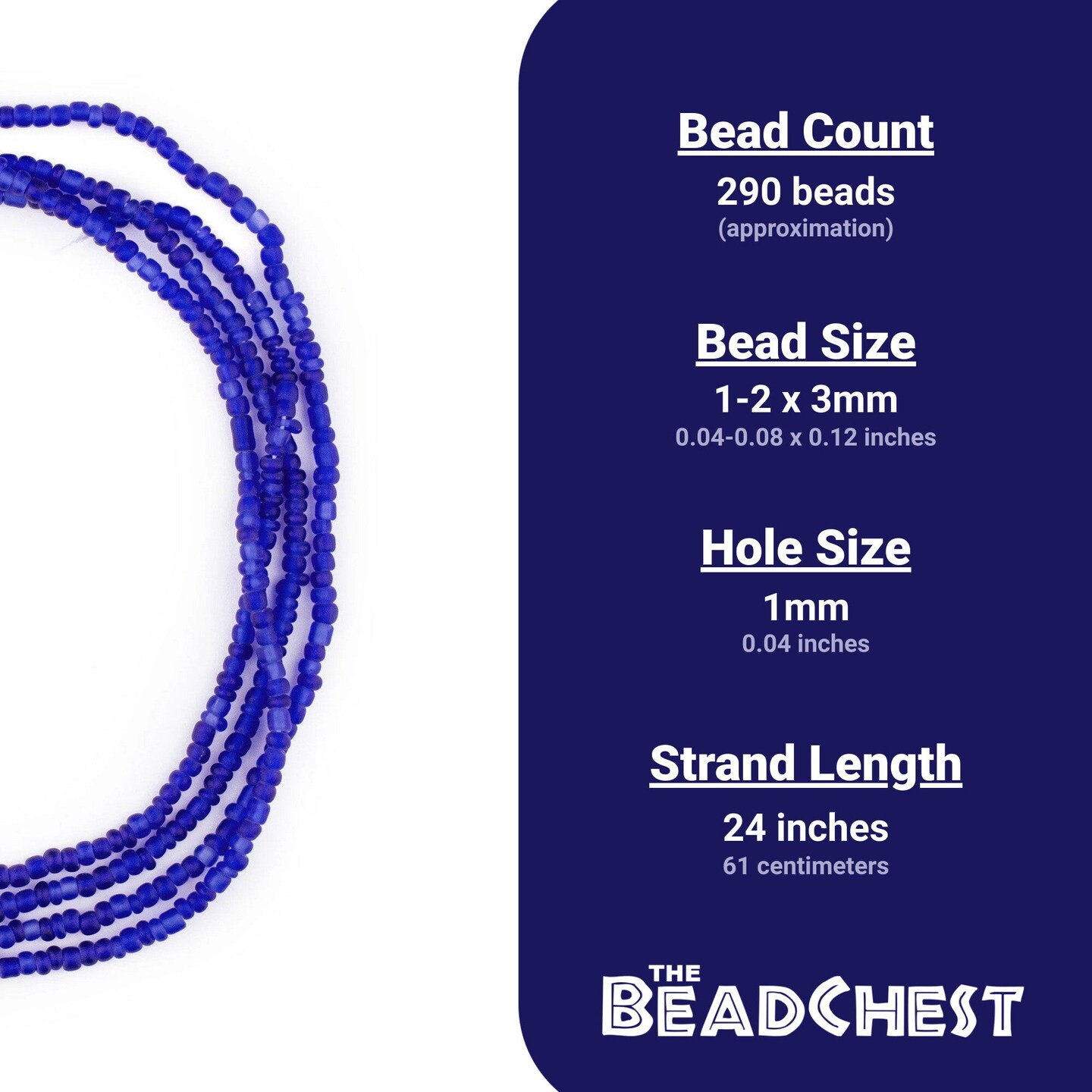 The Bead Chest Translucent Cobalt Blue Matte Glass Seed Beads (3mm) - 24 inch Strand of Quality Glass Beads