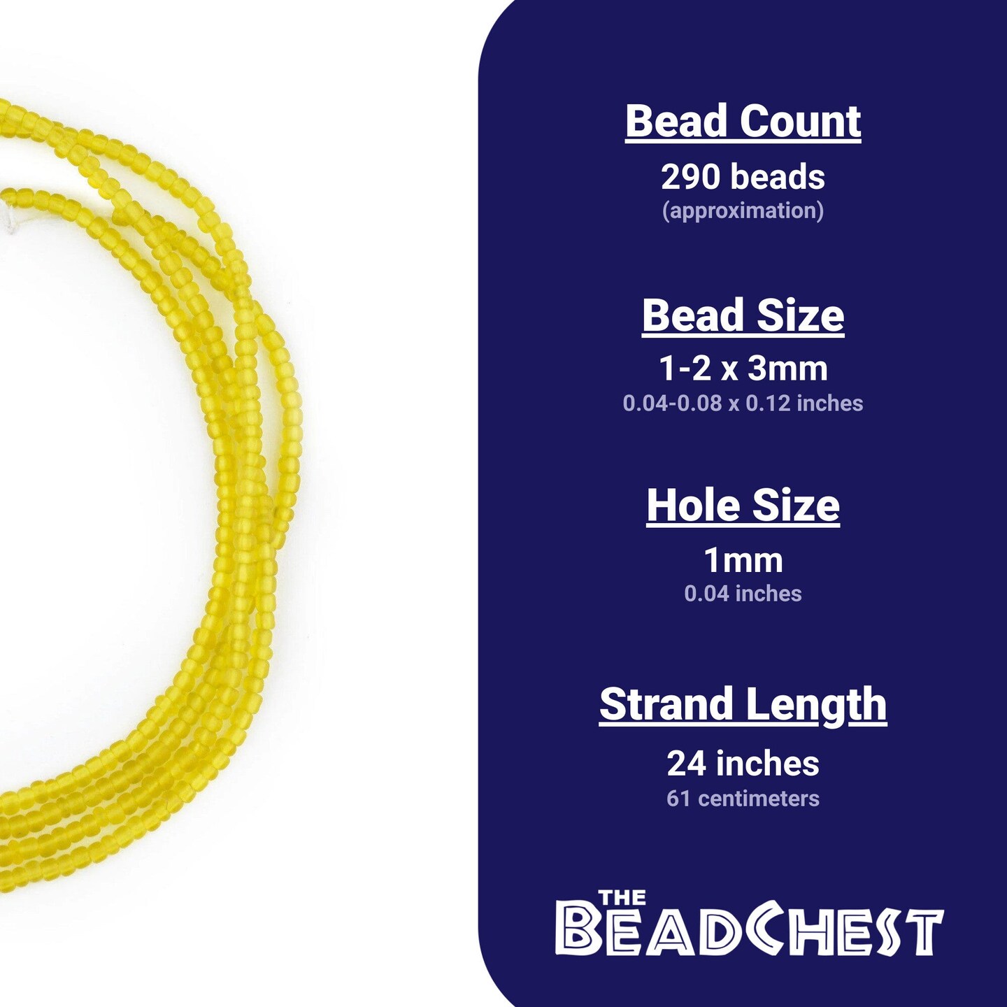 The Bead Chest Translucent Yellow Matte Glass Seed Beads (3mm) - 24 inch Strand of Quality Glass Beads