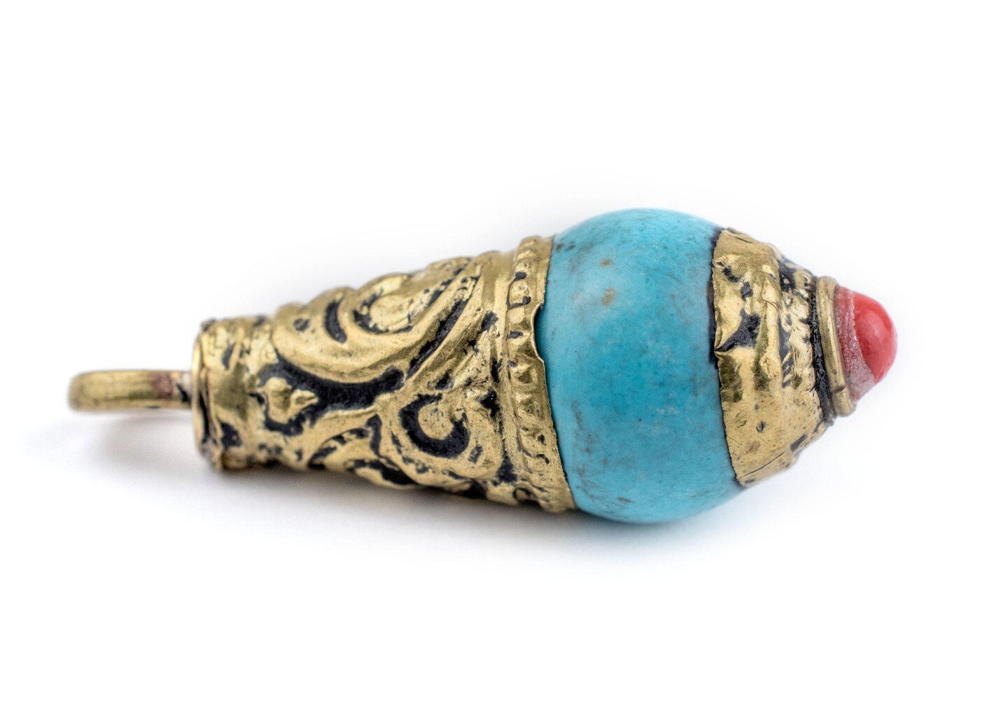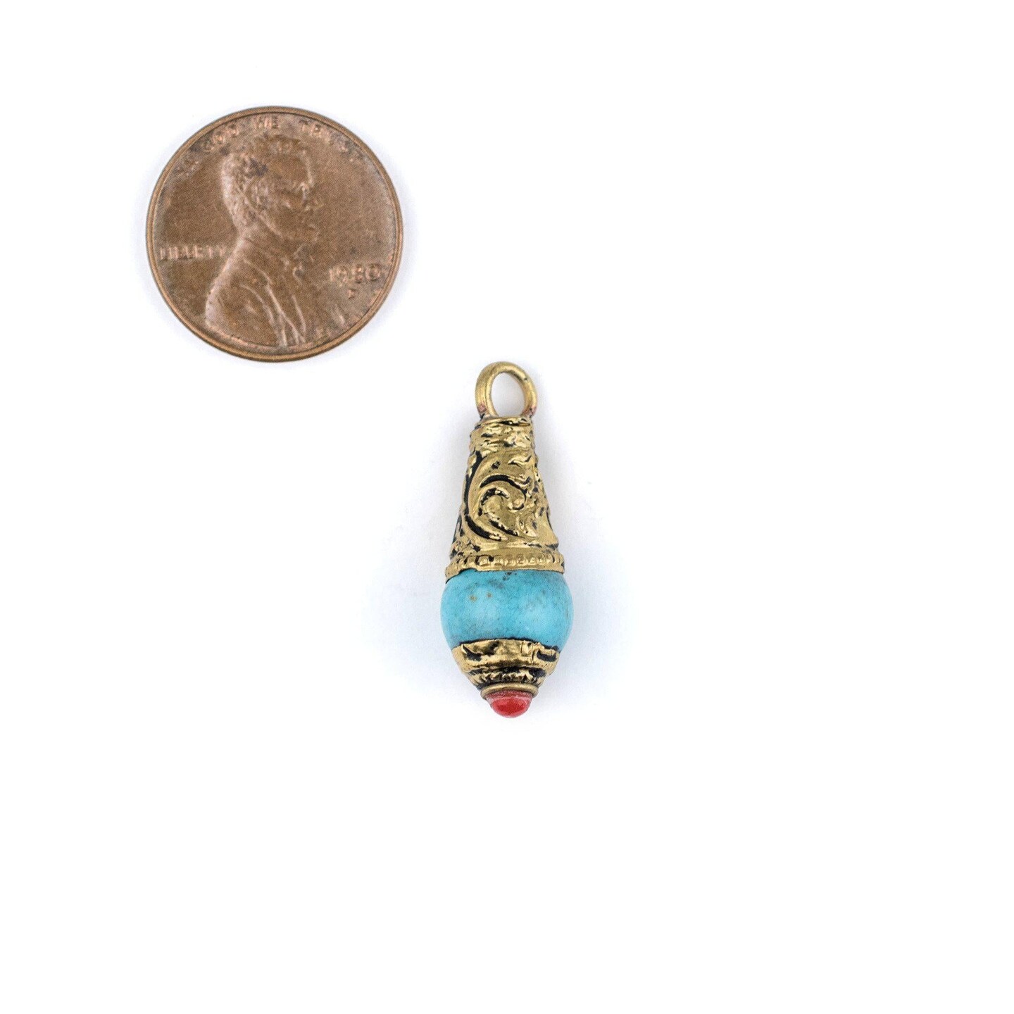 The Bead Chest Turquoise Brass Capped Locket Pendant (28x10mm)