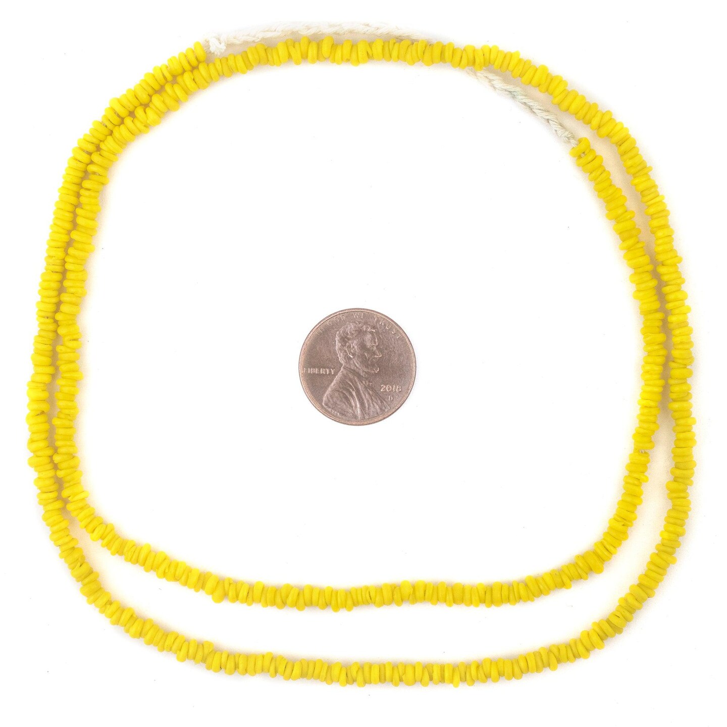 The Bead Chest Vibrant Yellow 4mm Glass Heishi Beads - 25" Strand of Indonesian Java Spacer Beads for Crafts & Jewelry Making