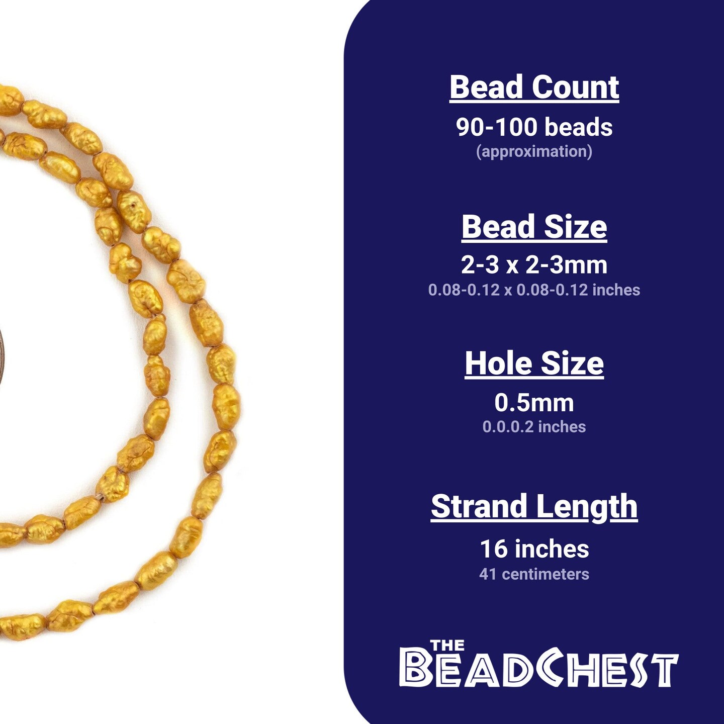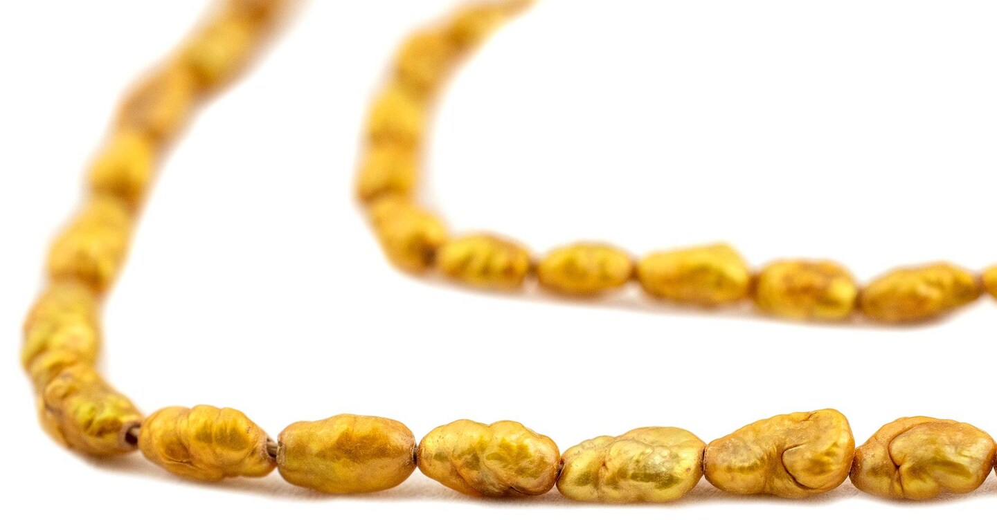 The Bead Chest Vintage Japanese Rice Pearl Beads: 3mm Lustrous Artisan Beads from Japan | Dark Gold | Full Strand